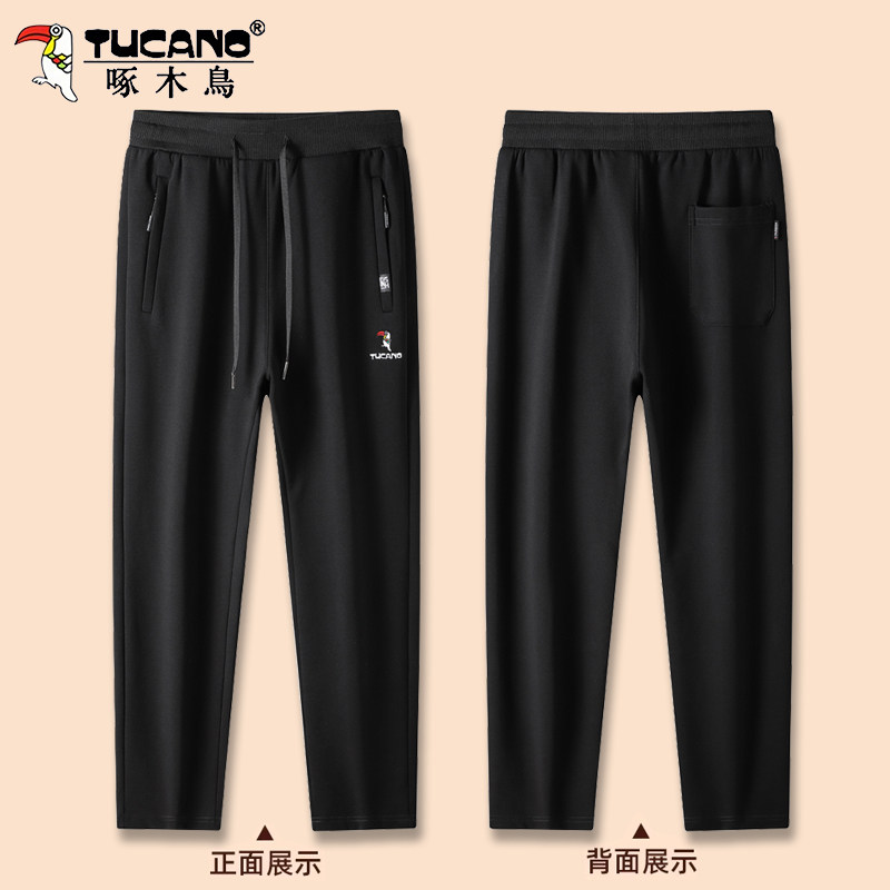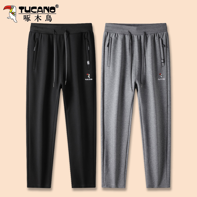 啄木鸟纯棉男士休闲裤春秋季直筒运动裤大码卫裤冬季加绒裤子男款