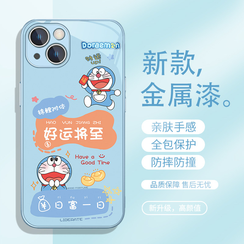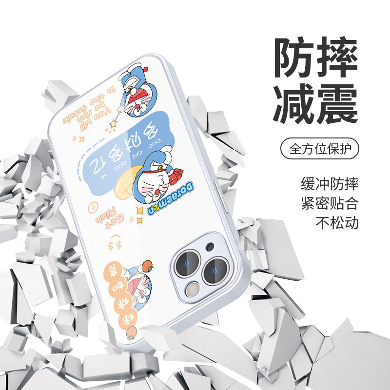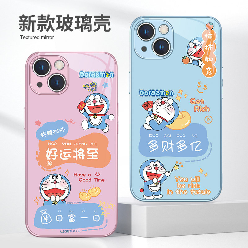 柿柿如意适用苹果17/15pro手机壳iPhone16/13哆啦A梦11promax好运iPhone14/12mini卡通xsmax新款8plus/xr玻璃