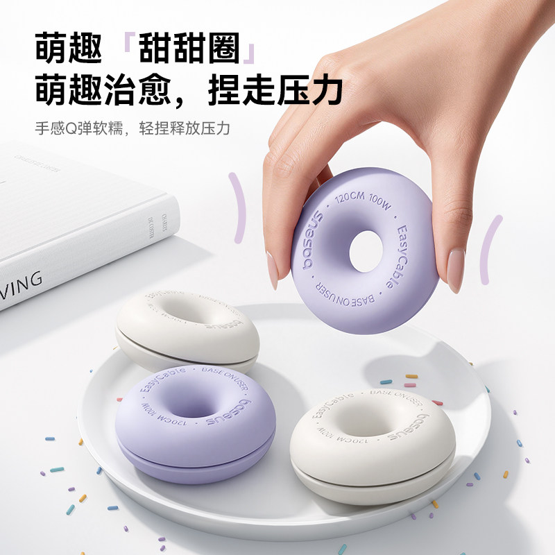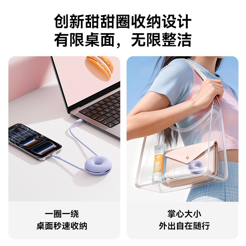 倍思100W双Type-C数据线可伸缩甜甜圈配色适用苹果17ProMax数据线iPhone16快充手机车载15双typec接口13器tpc