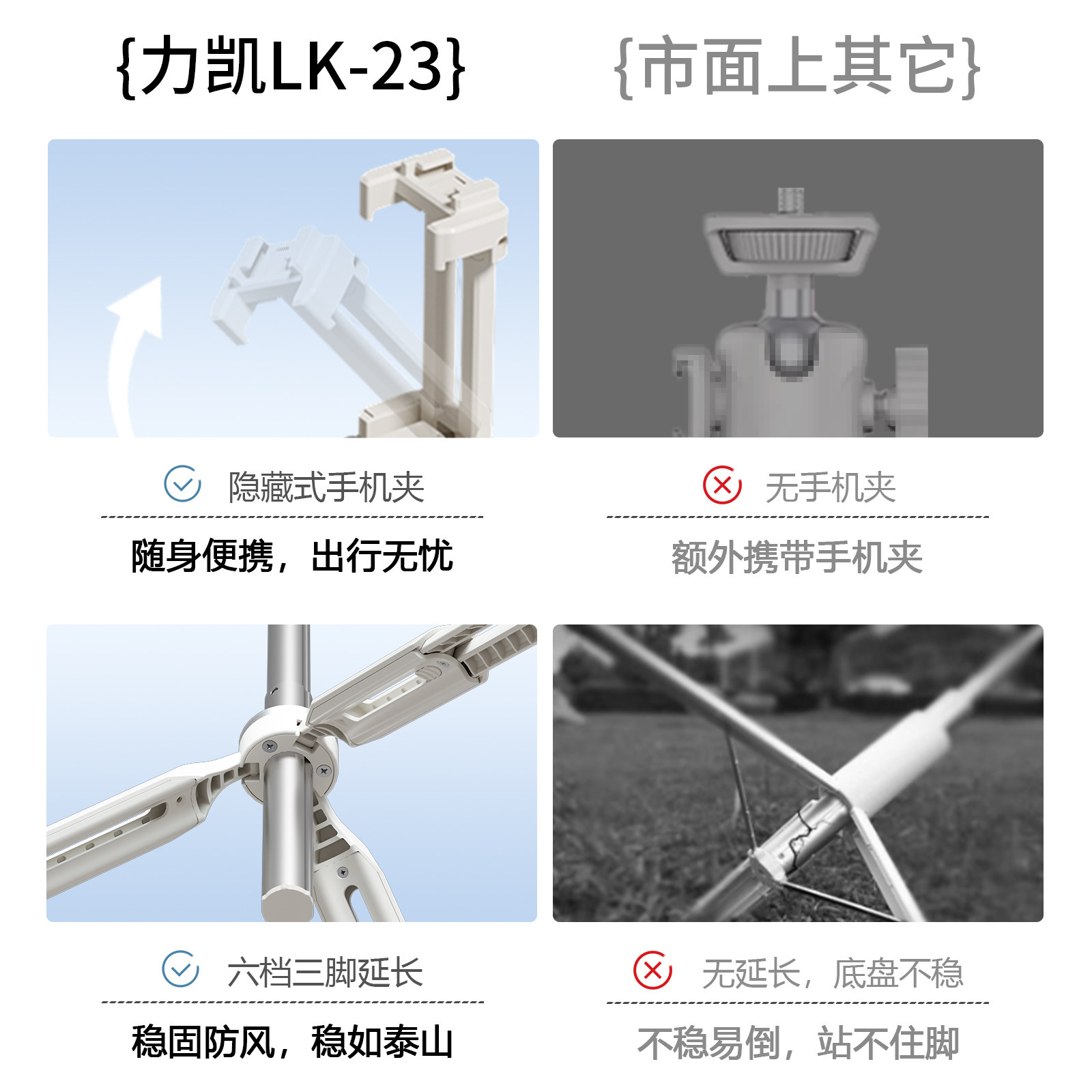 力凯LK23三脚架手机相机支架迷你便携桌面直播摄影佳能单反微单自拍杆手持延长落地一体拍照三角架