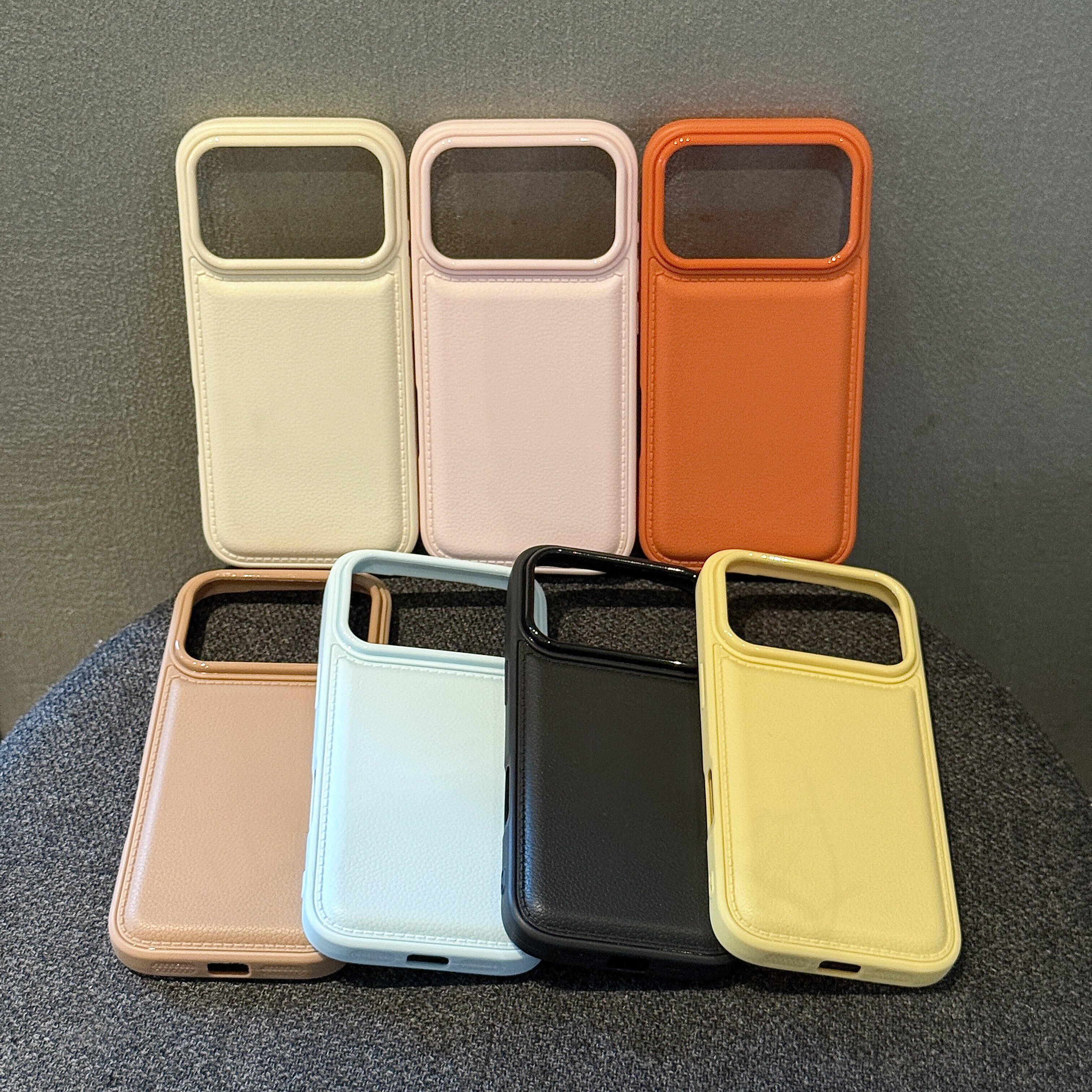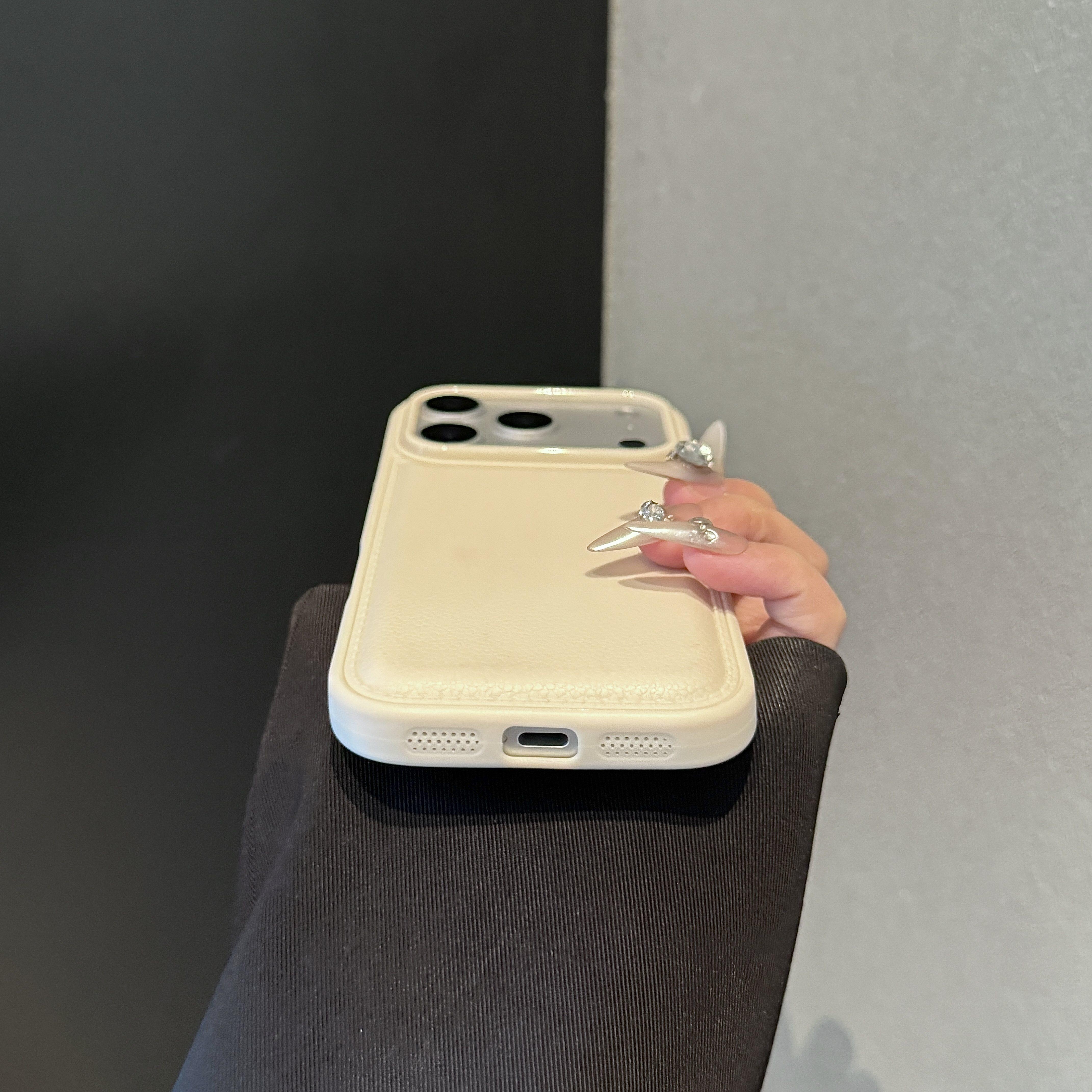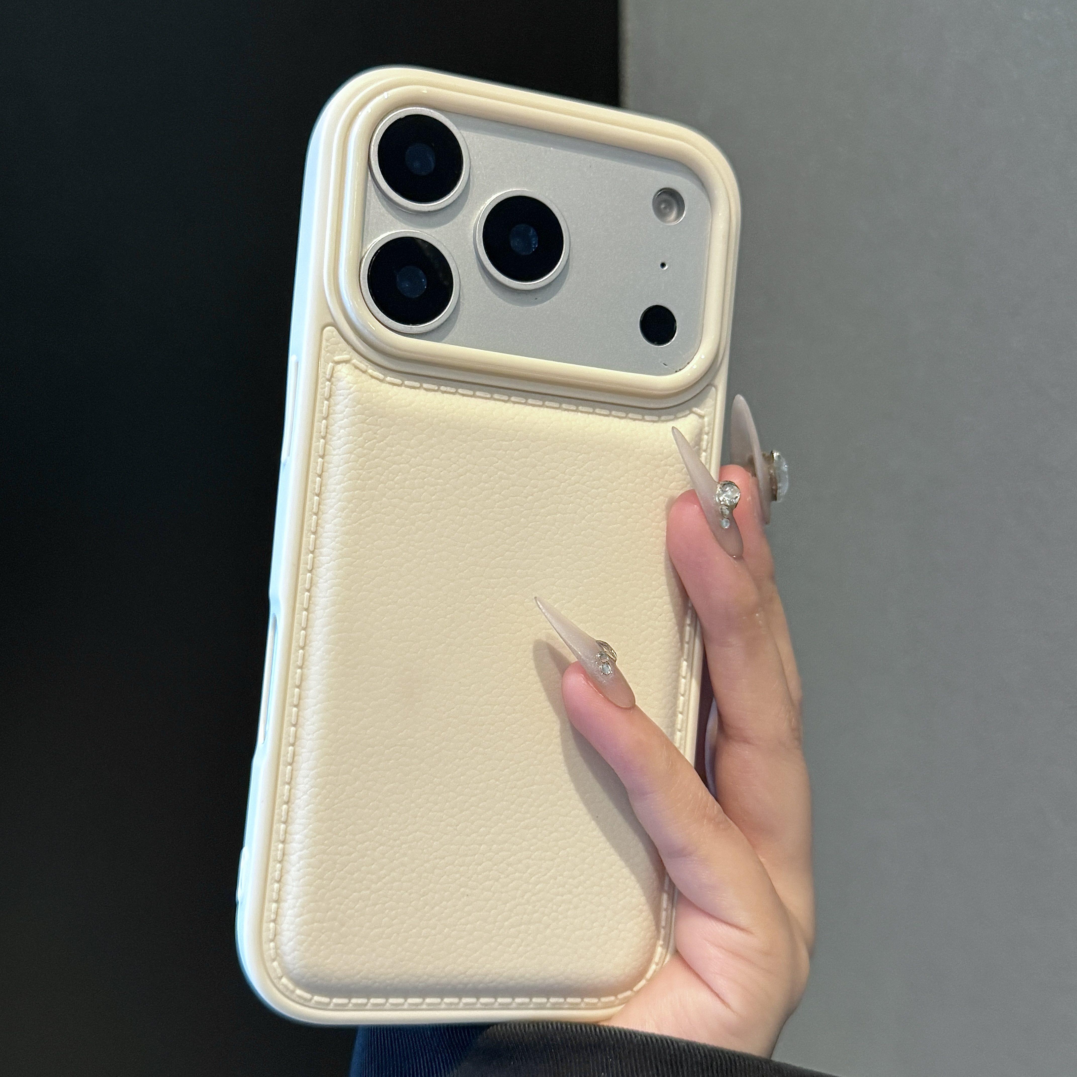 ins秋冬鼓包荔枝纹适用苹果17promax手机壳皮质iPhone16promax网红15pro全包防摔13保护套14女款16plus纯色11