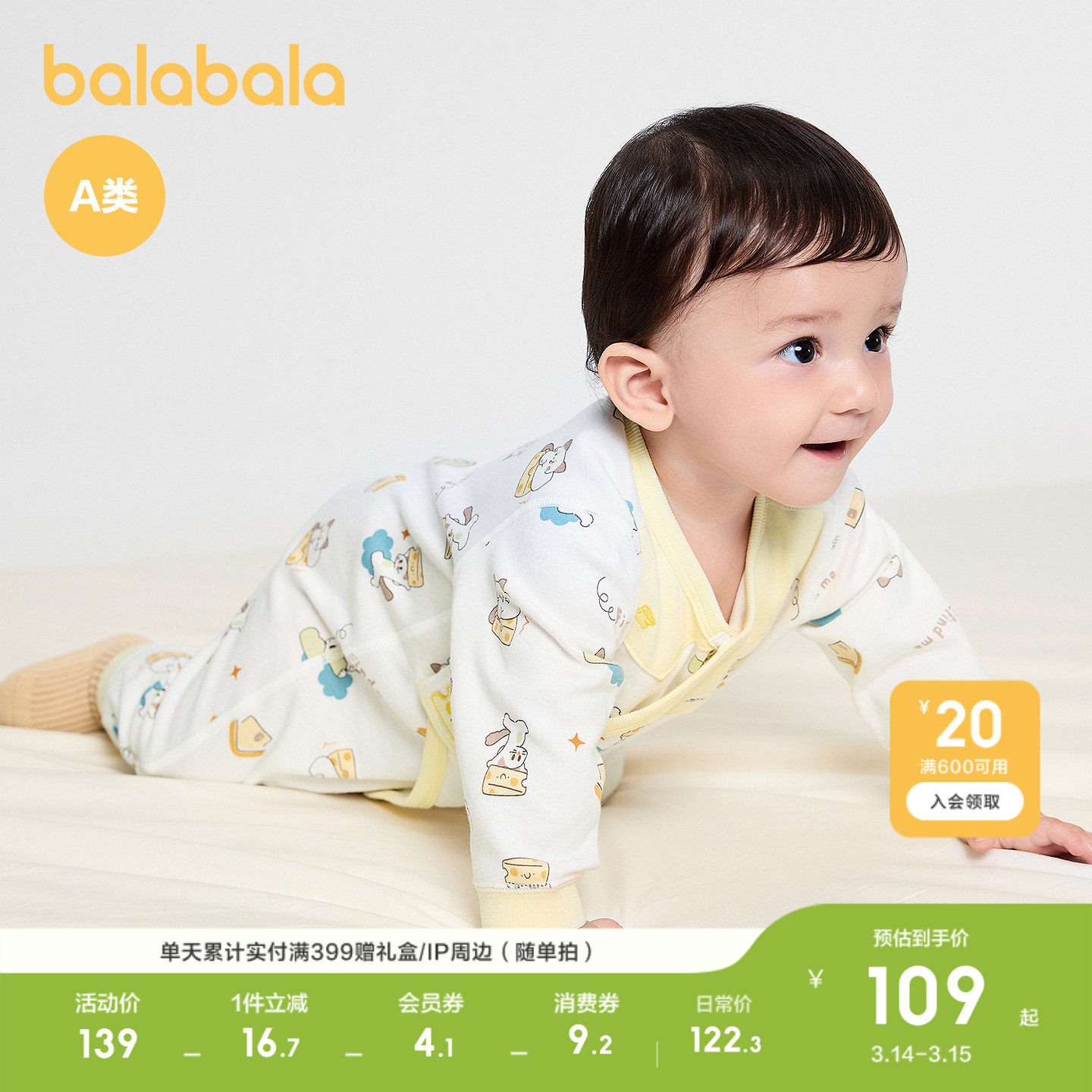 【商场同款】巴拉巴拉婴儿连体衣男女童宝宝哈衣爬服全棉2026新款