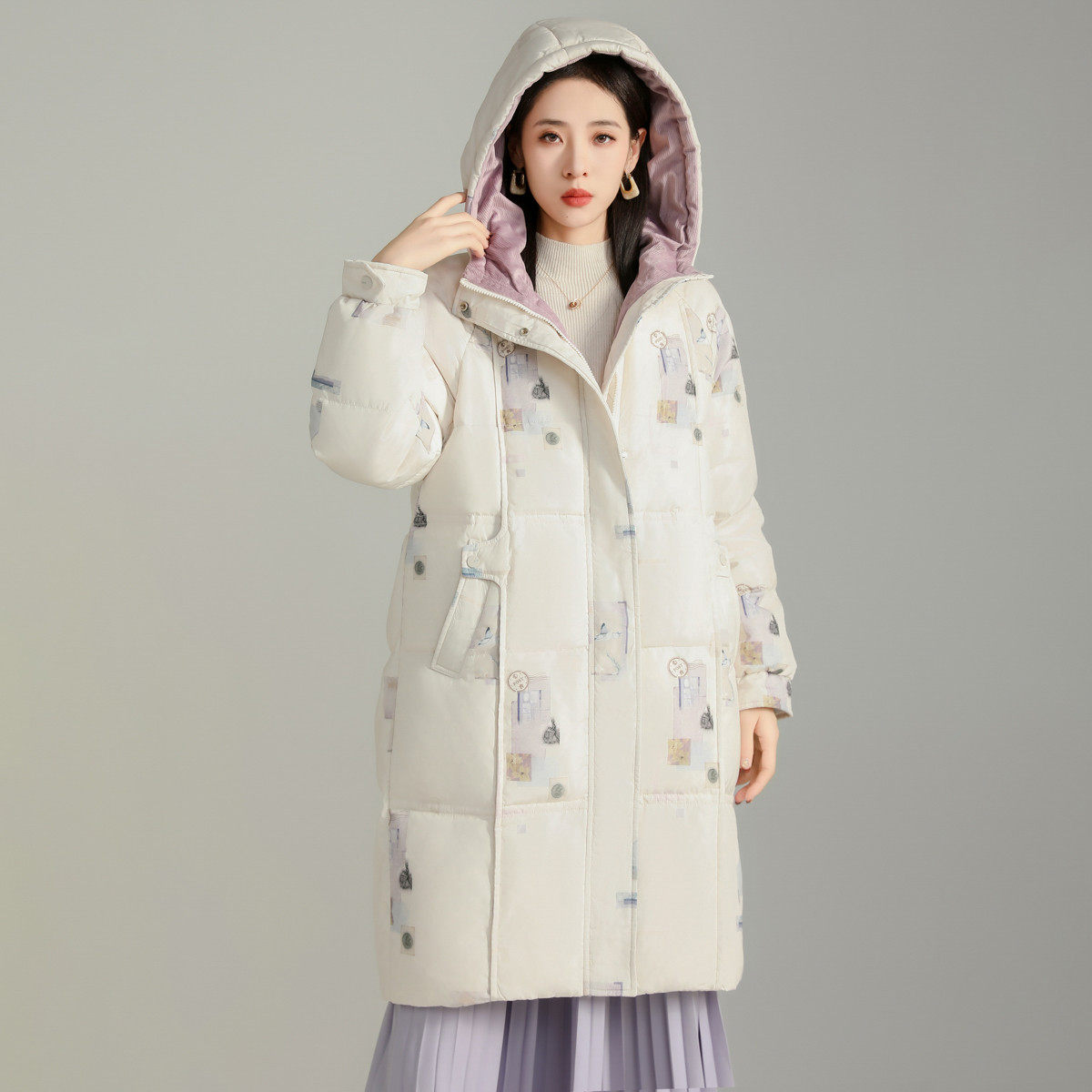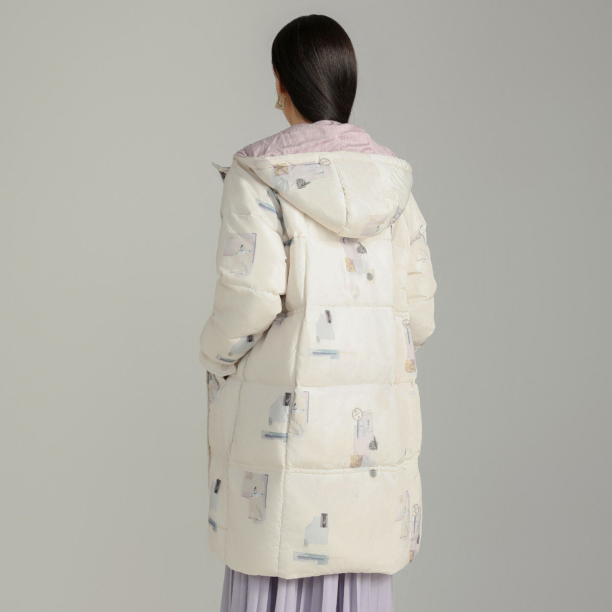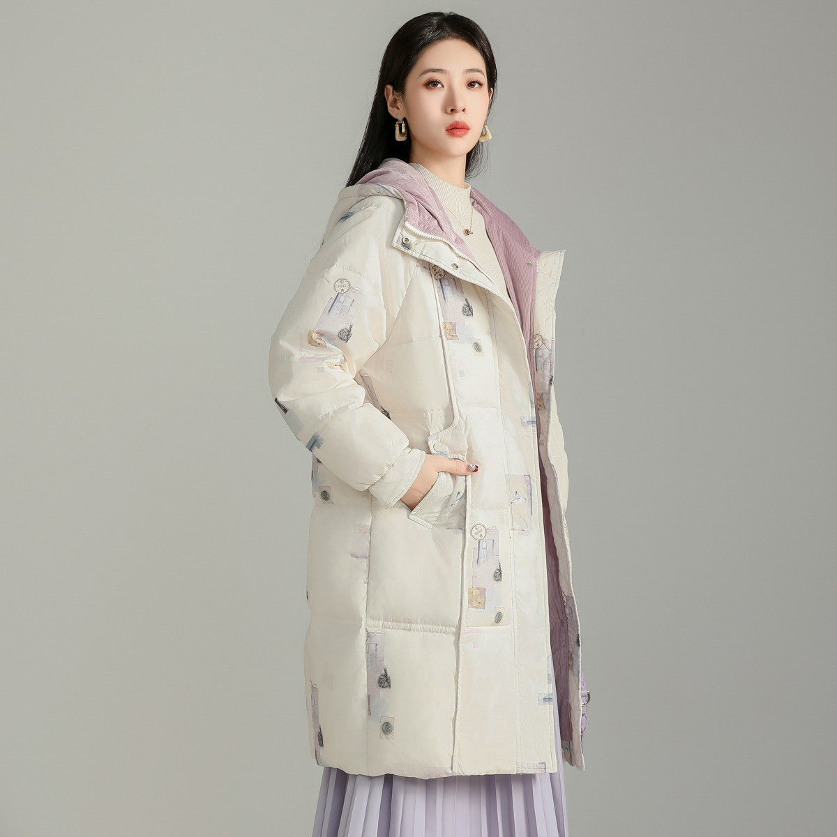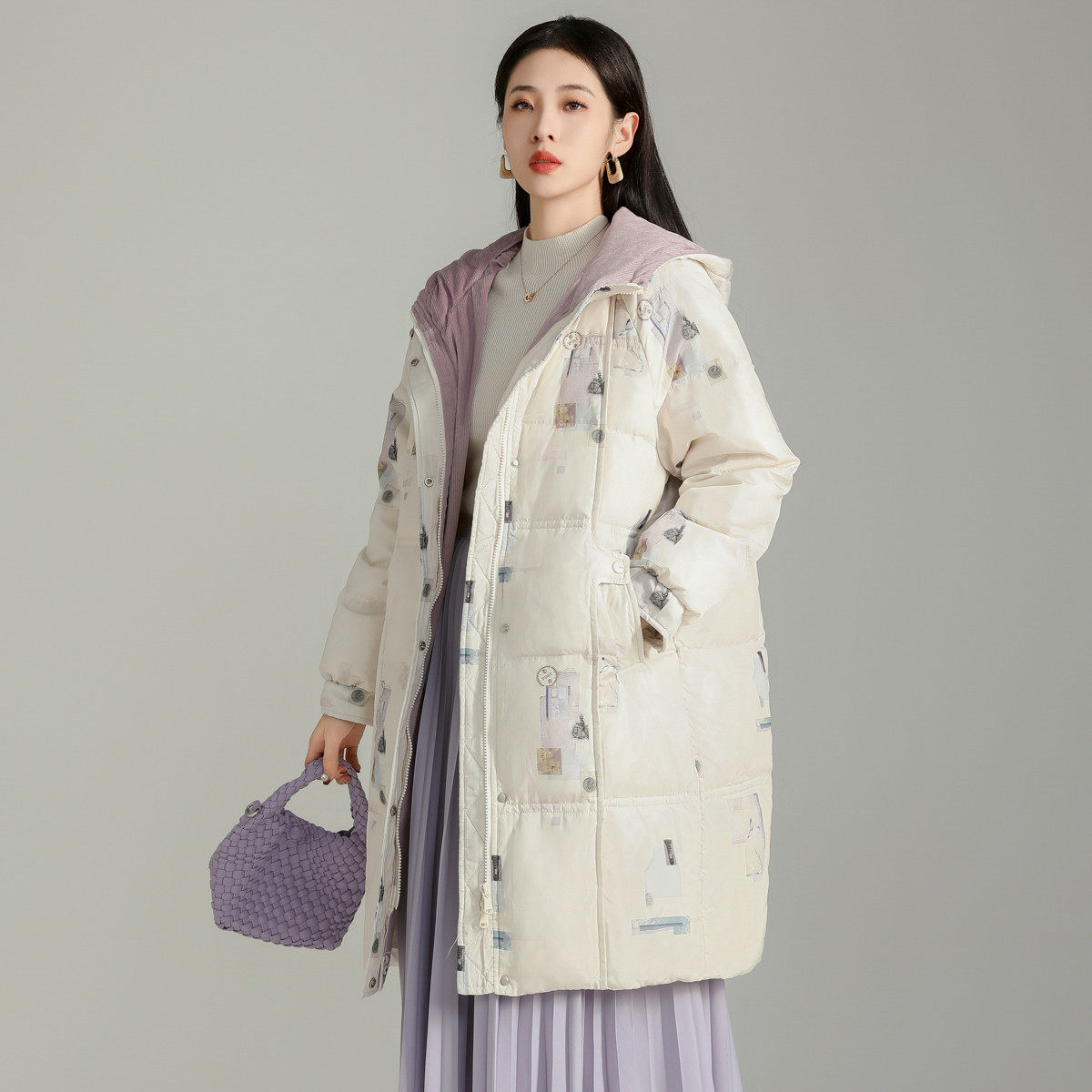 Smen诗萌商场同款系列款连帽羽绒服90白鸭绒2025冬中长款加厚外套