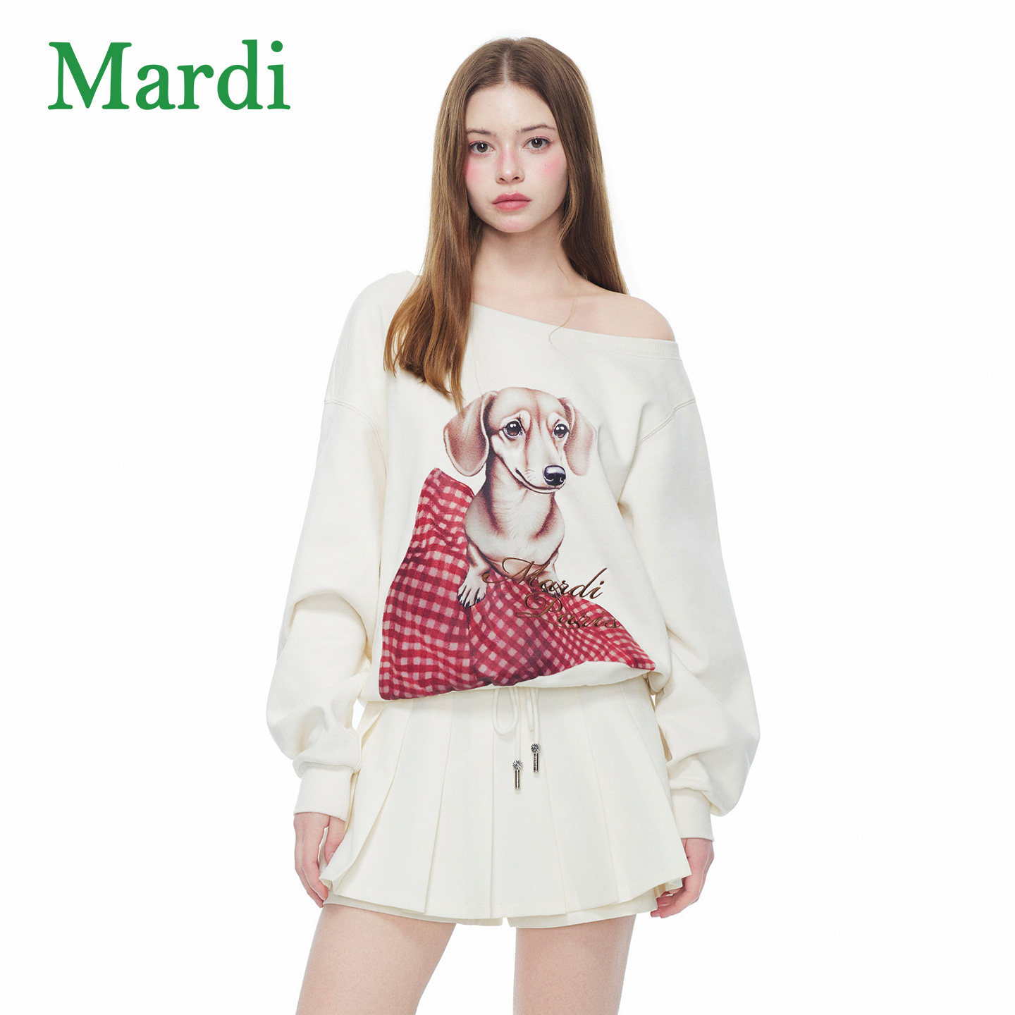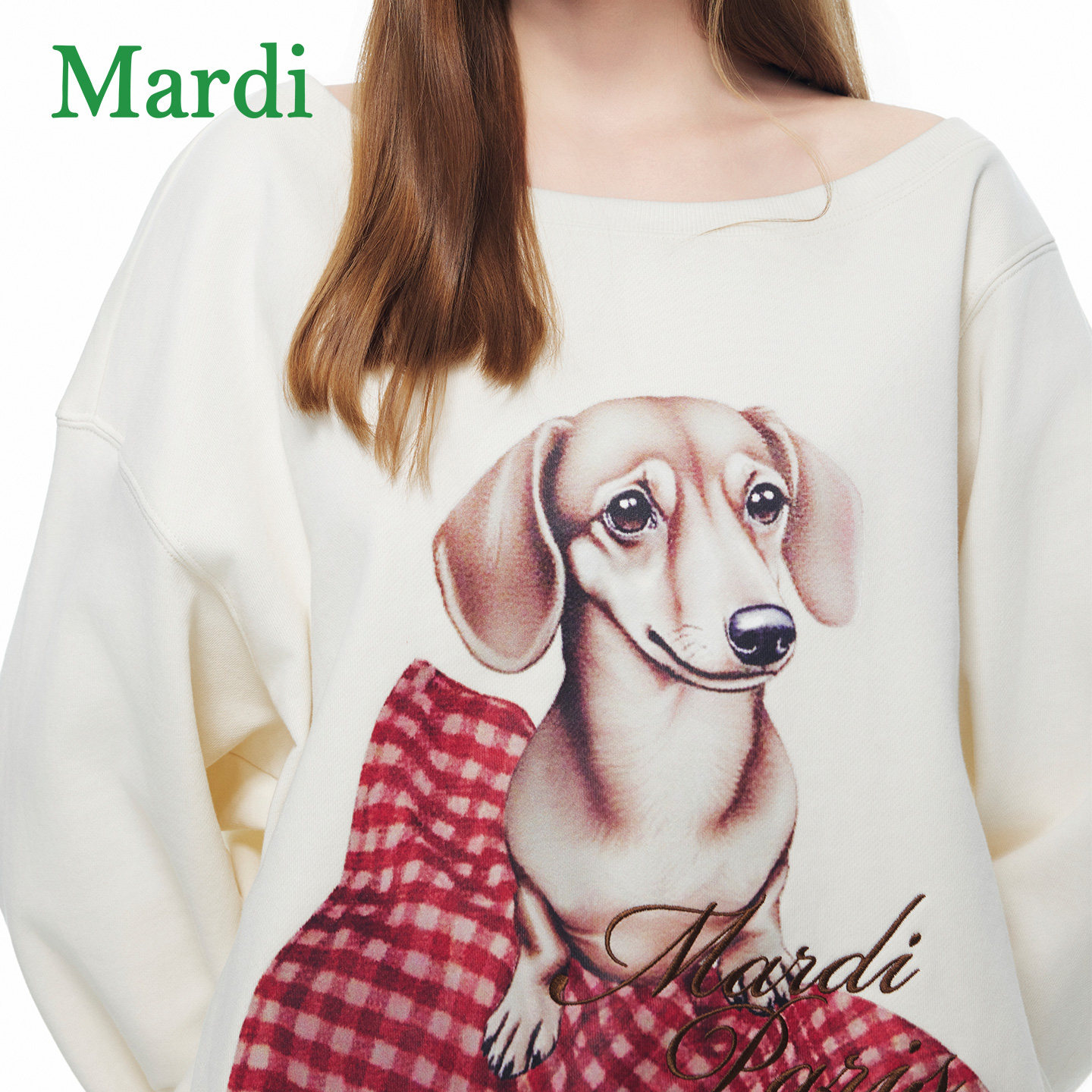 MARDI刺绣卫衣26款春美式俏皮风小狗女白色宽松减龄上衣卡通动漫