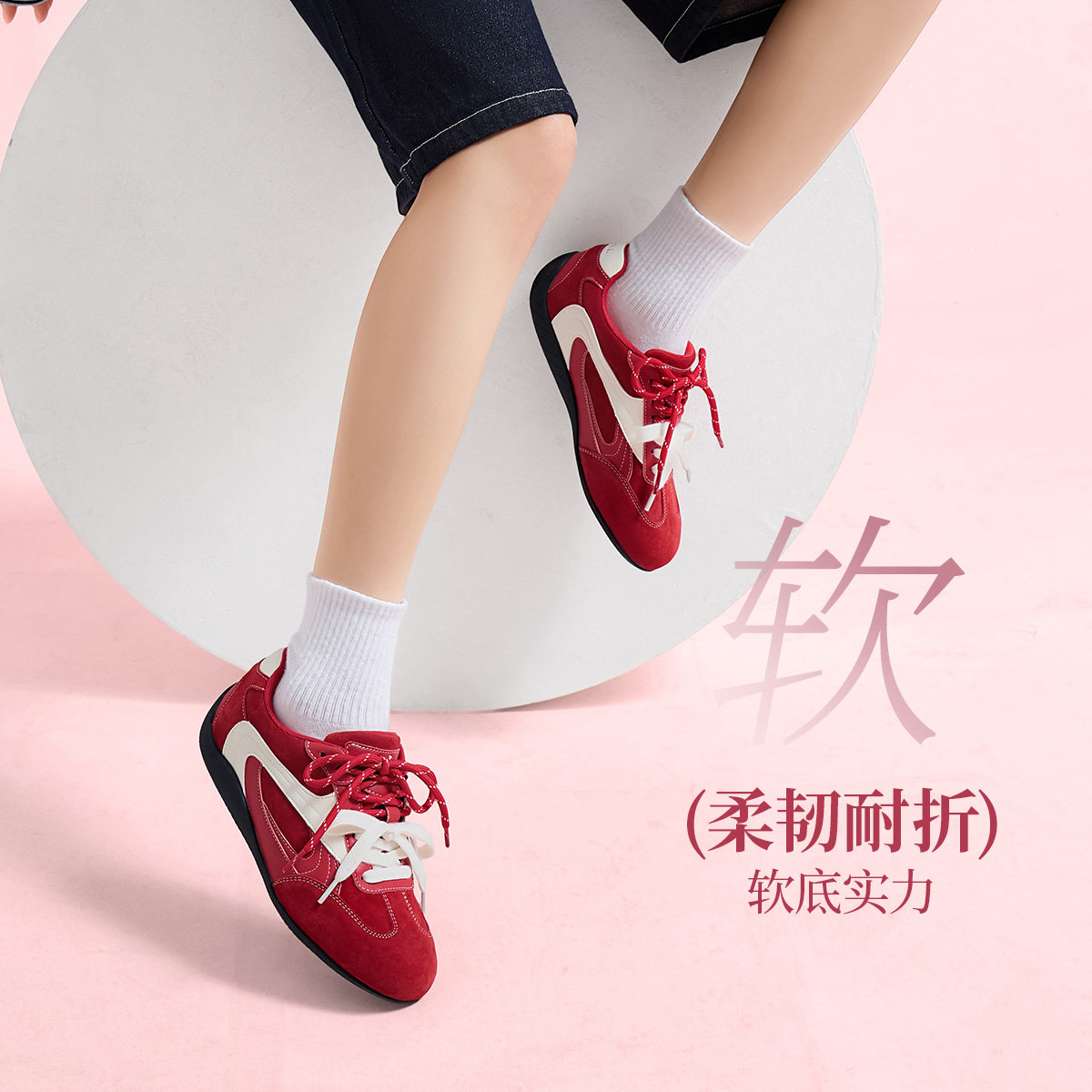 红色厚底德训鞋女款2025新款冬季百搭休闲轻便小个子增高加绒鞋子