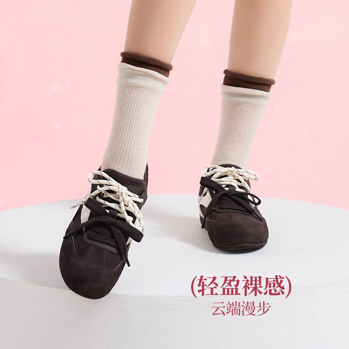 真皮~骄屿内增高芭蕾德训鞋女新款复古百搭休闲阿甘鞋厚底运动鞋