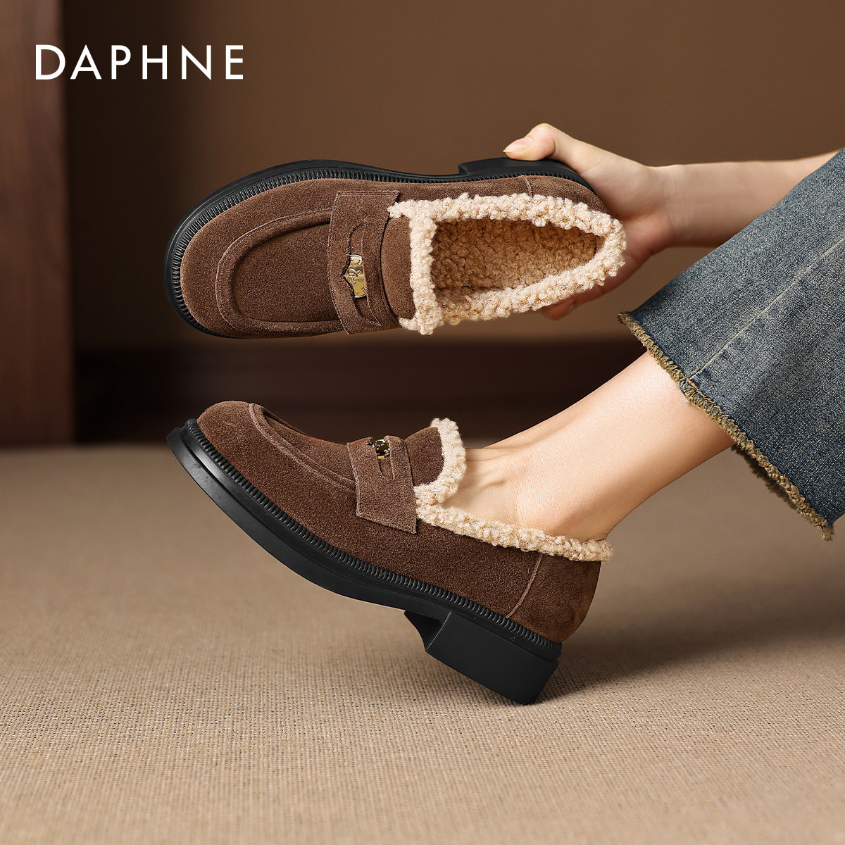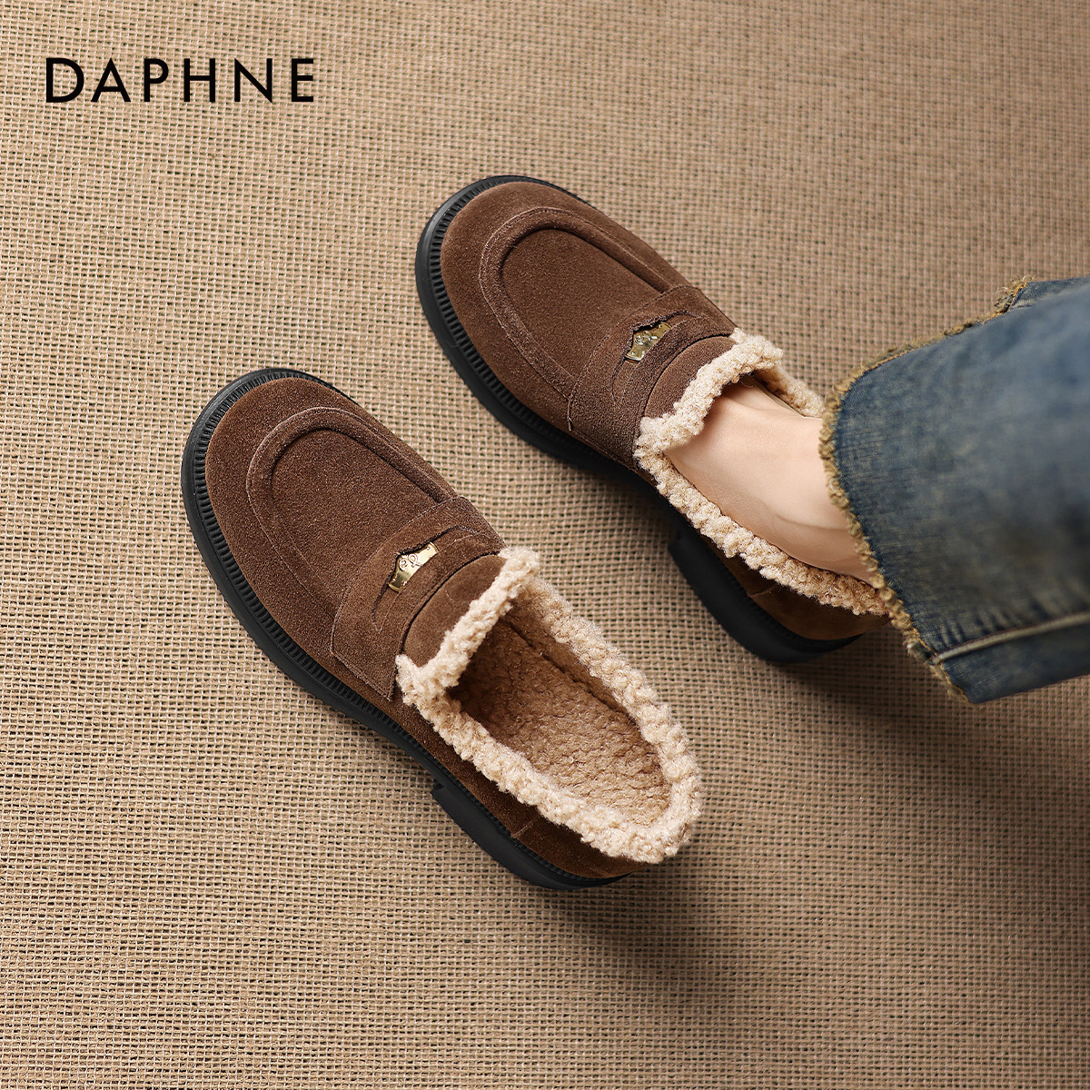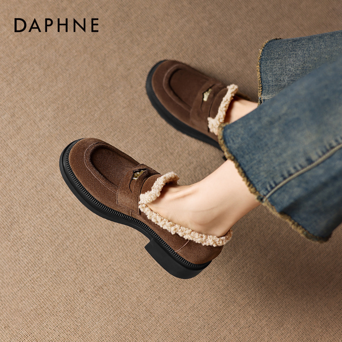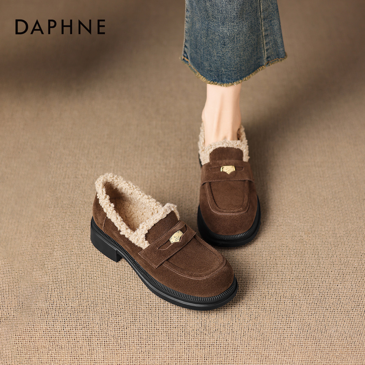 达芙妮加绒乐福鞋女秋冬款2026新款冬季毛毛鞋加厚小皮鞋豆豆单鞋