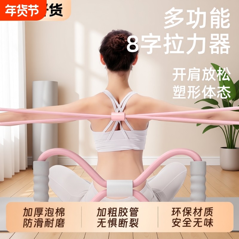 8字拉力器开背练背拉背神器拉伸弹力带家用美背瑜伽八字绳拉力绳