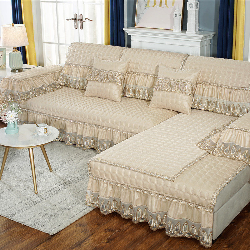 简约现代沙发垫防滑高档布艺纯色坐垫沙发套罩子欧式蕾丝四季通用