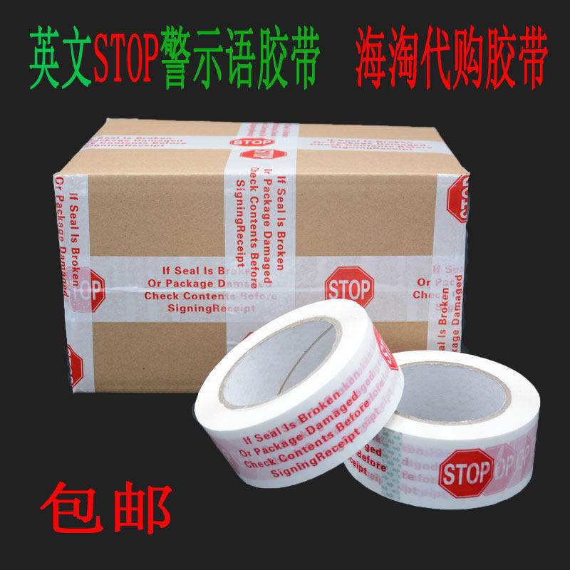 7宽STOP英文胶带警示语胶带外贸出口专业胶带4.5宽打包胶带
