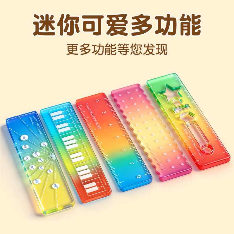 称心如意尺掌心尺糖果色m5手帐本迷你刻度尺透明波浪直尺子称心如意尺迷你尺子手帐口袋便携渐变色迷你尺子