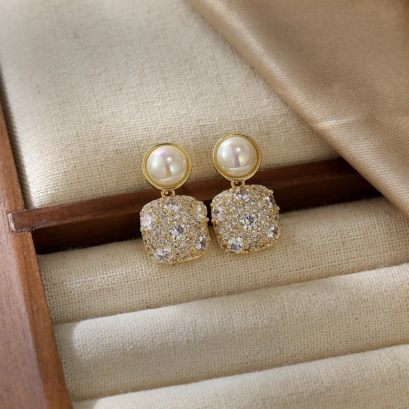 明星爆款方糖耳钉纯银S925银针独特耳饰气质珍珠耳环女耳坠高级感