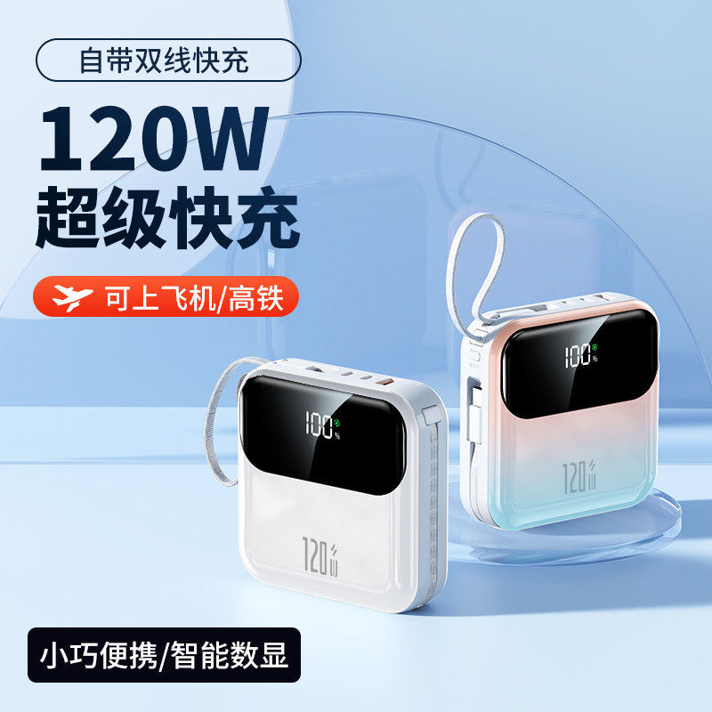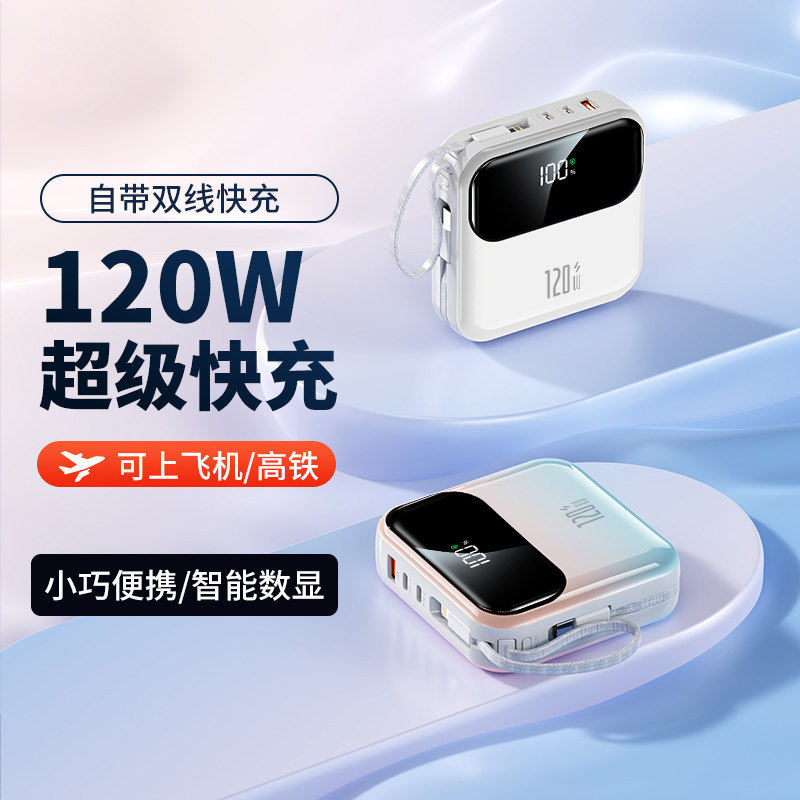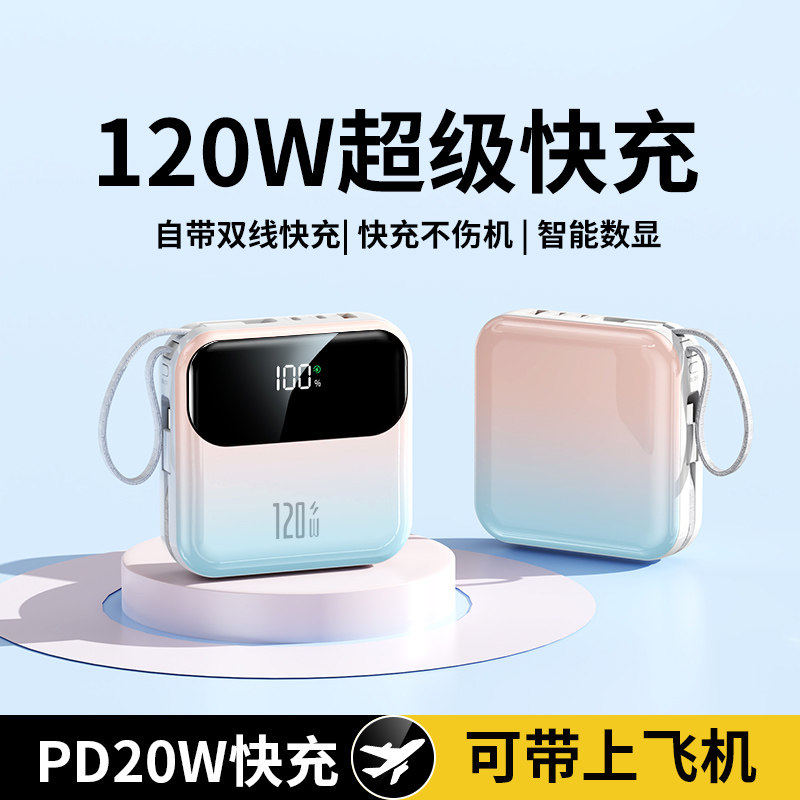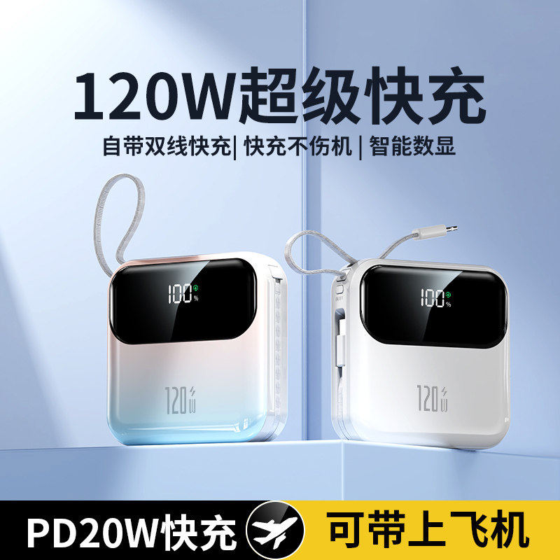 【3C认证充电宝】新款超级快充大容量20000毫安自带线超薄小巧便携5万移动电源正品适用华为苹果专用可上飞机