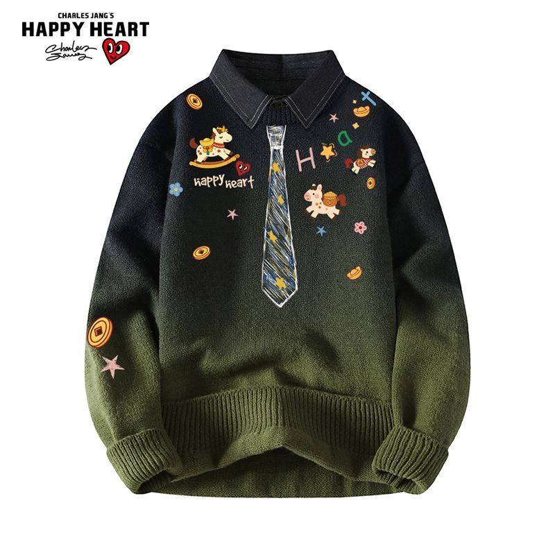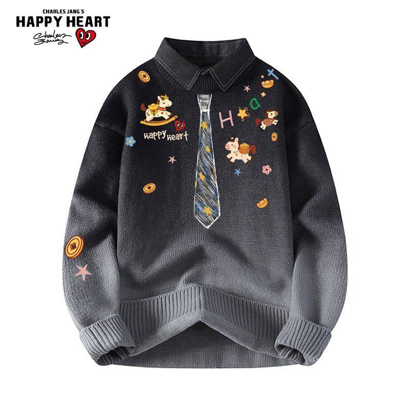 查尔斯桃心涂鸦领带针织衫男女马年2026新款