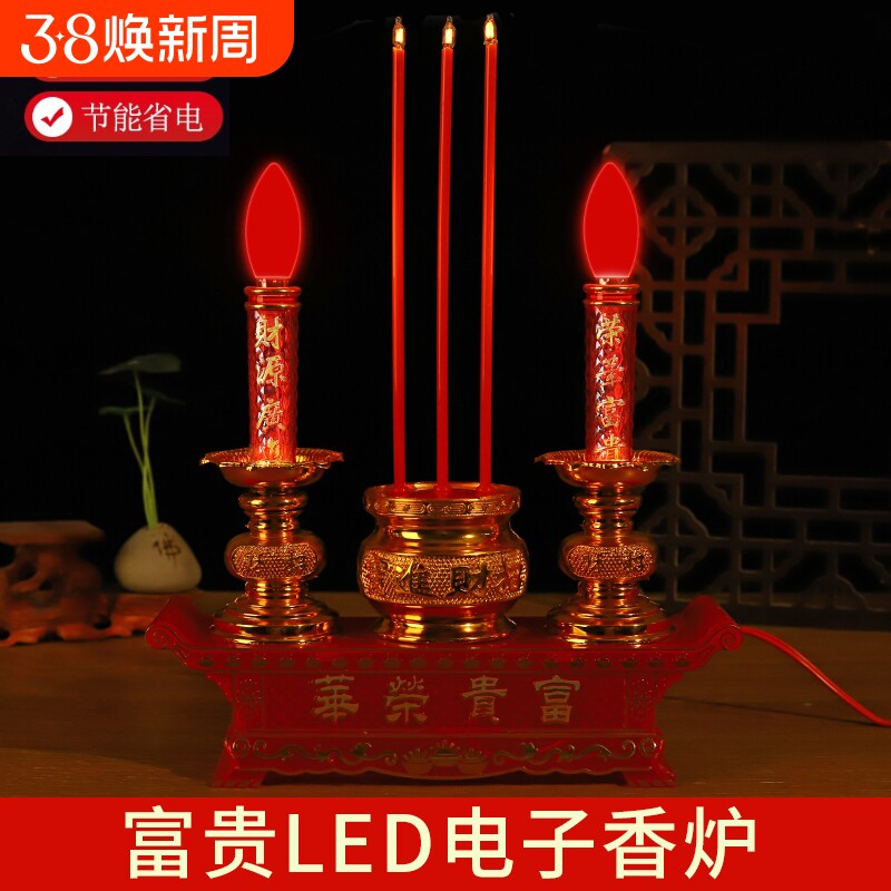 摇摆LED电子蜡烛灯供佛财神乔迁供奉插电电池仿真长明灯香炉烛台