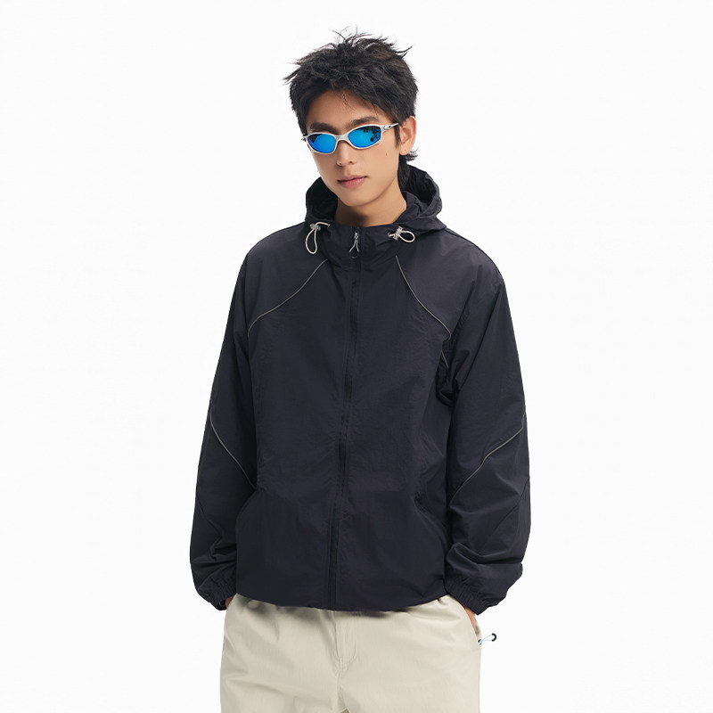 美特斯邦威男女同款夹克秋季简洁舒适防水防风运动连帽功能性外套