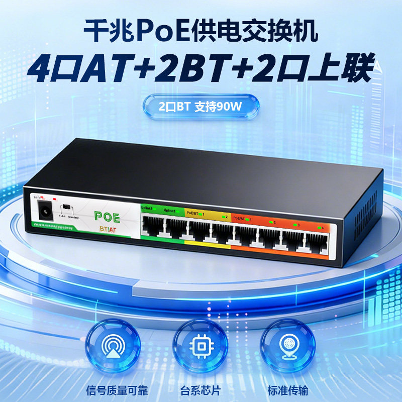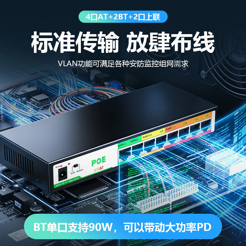 白蜘蛛POE交换机千兆供电监控专用4口AT+2口BT 6口10口16口24口摄像头 带光口VLAN PoE Switch网络路由器