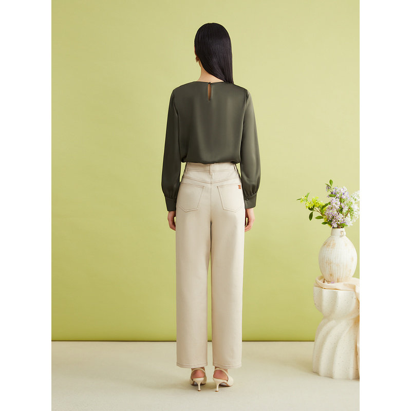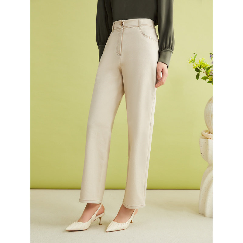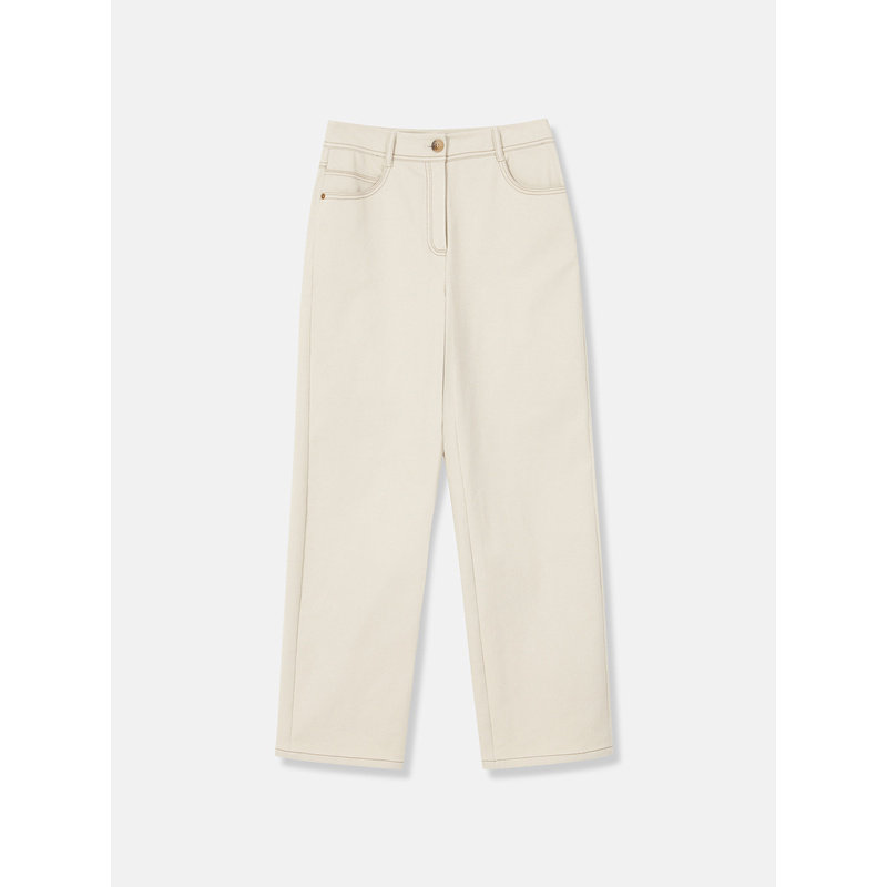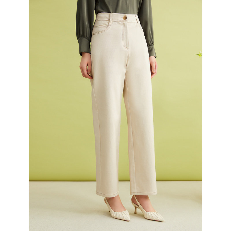 YINER音儿春季法式优雅斜纹简约垂感米白直筒牛仔长裤
