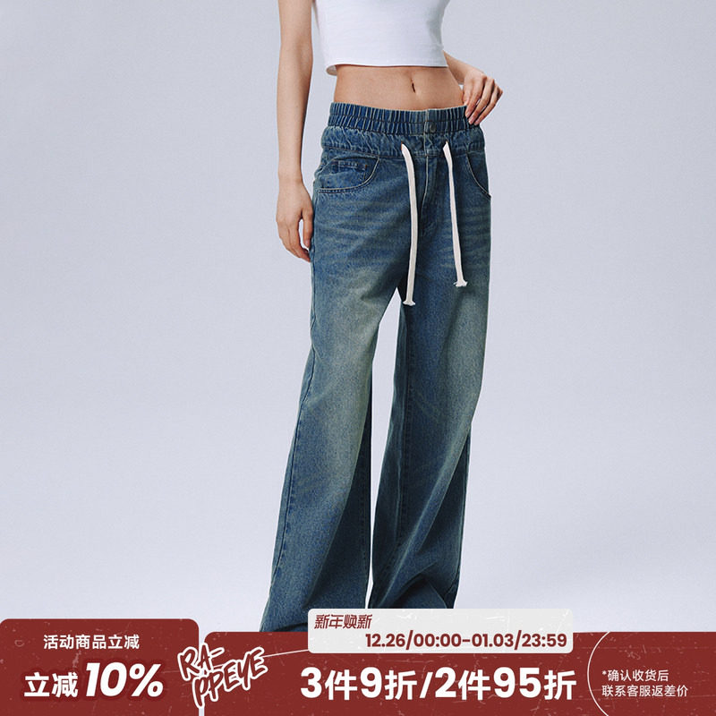 RAPPEYE 国潮设计感复古美式高街宽松显瘦直筒侧袋弯刀阔腿牛仔裤