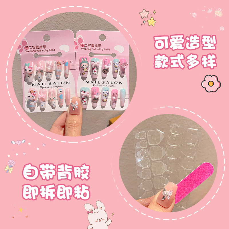 儿童穿戴甲片2025新款小女孩美甲贴纸指甲装饰贴片女童礼物玩具卡通可爱立体贴纸无毒无味可拆卸手工贴画