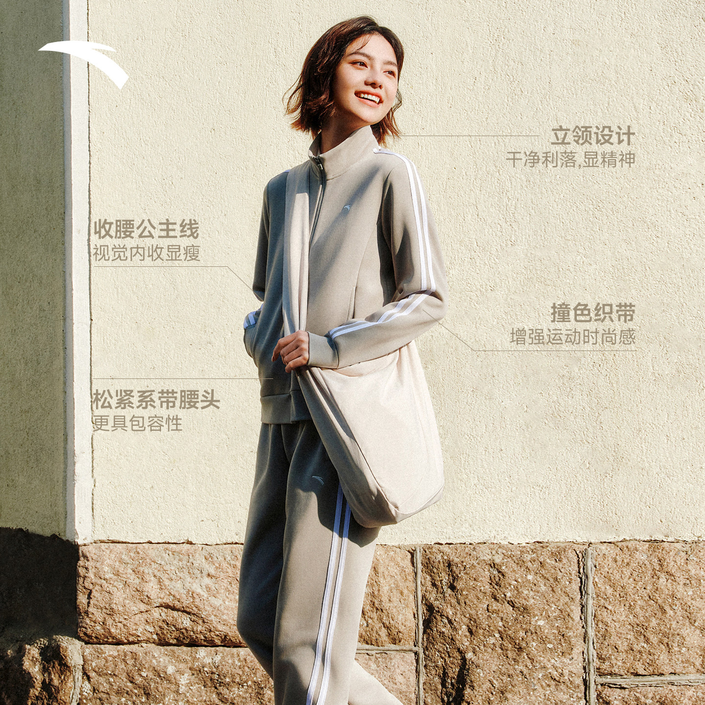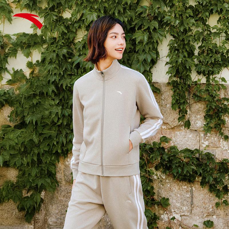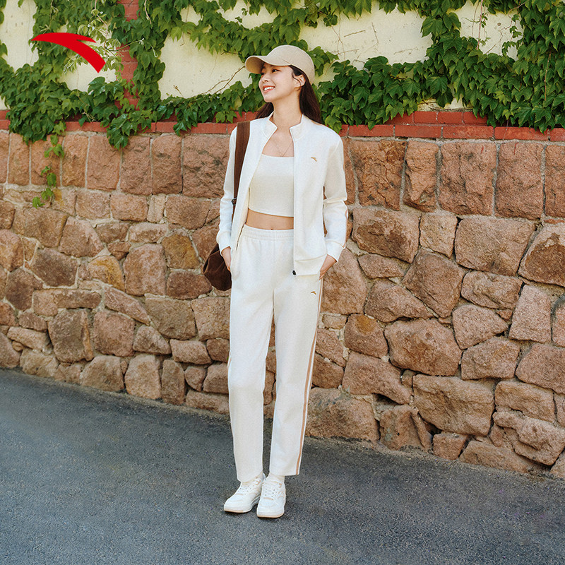 安踏遛弯套装丨运动套装女2025新款春秋户外训练休闲防风针织外套