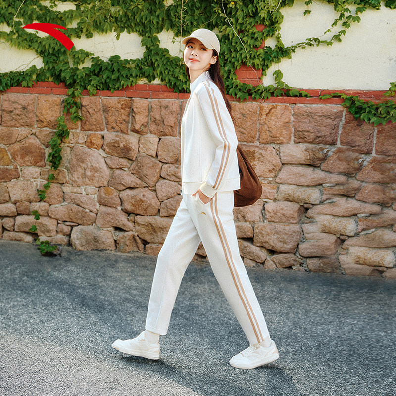 安踏好事发生丨易打理加绒针织运动套装女冬季休闲外套长裤两件套
