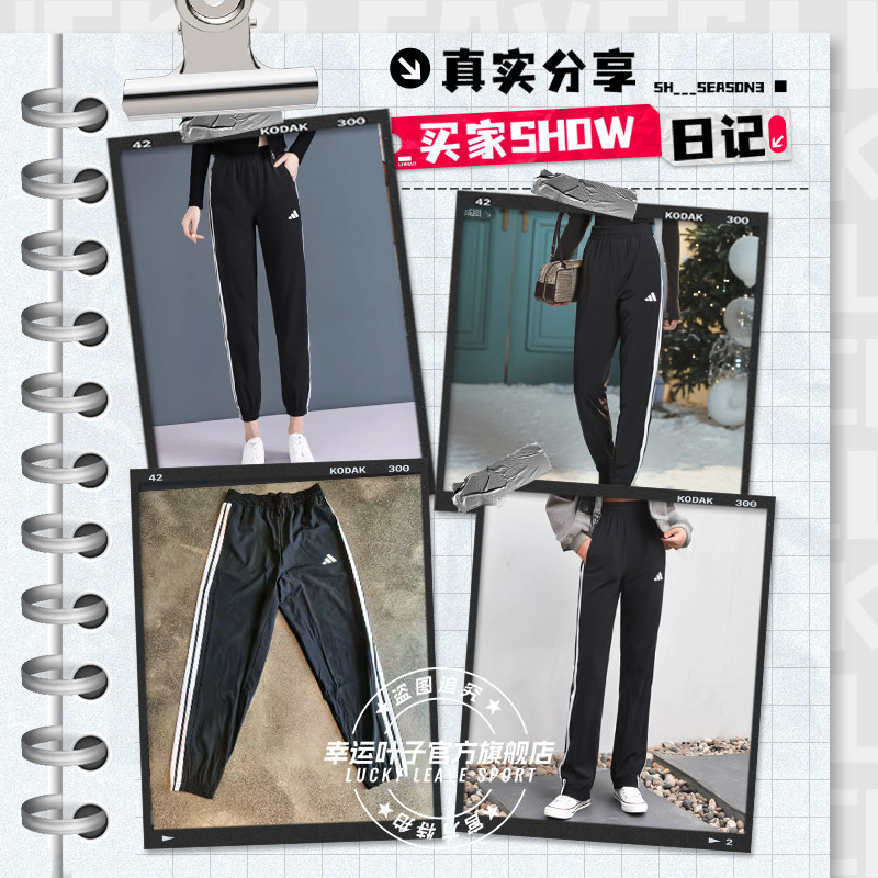 阿迪达斯速干裤子女裤2025新款运动裤三条杠束脚裤休闲裤JI8313