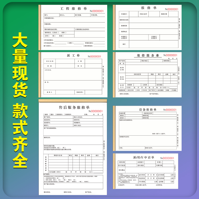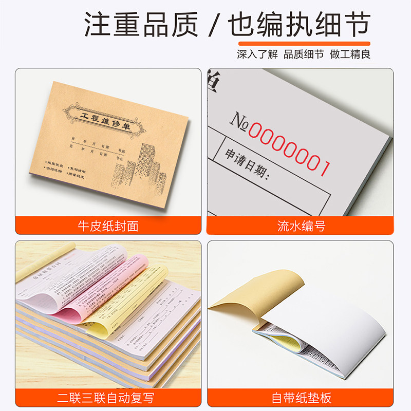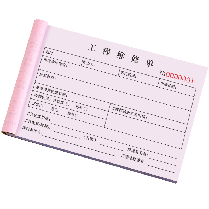 工程维修单三联设备机器工作工时单上门维护修理单据检修调试收据家电保修单部门记录表任务登记本物业报修单