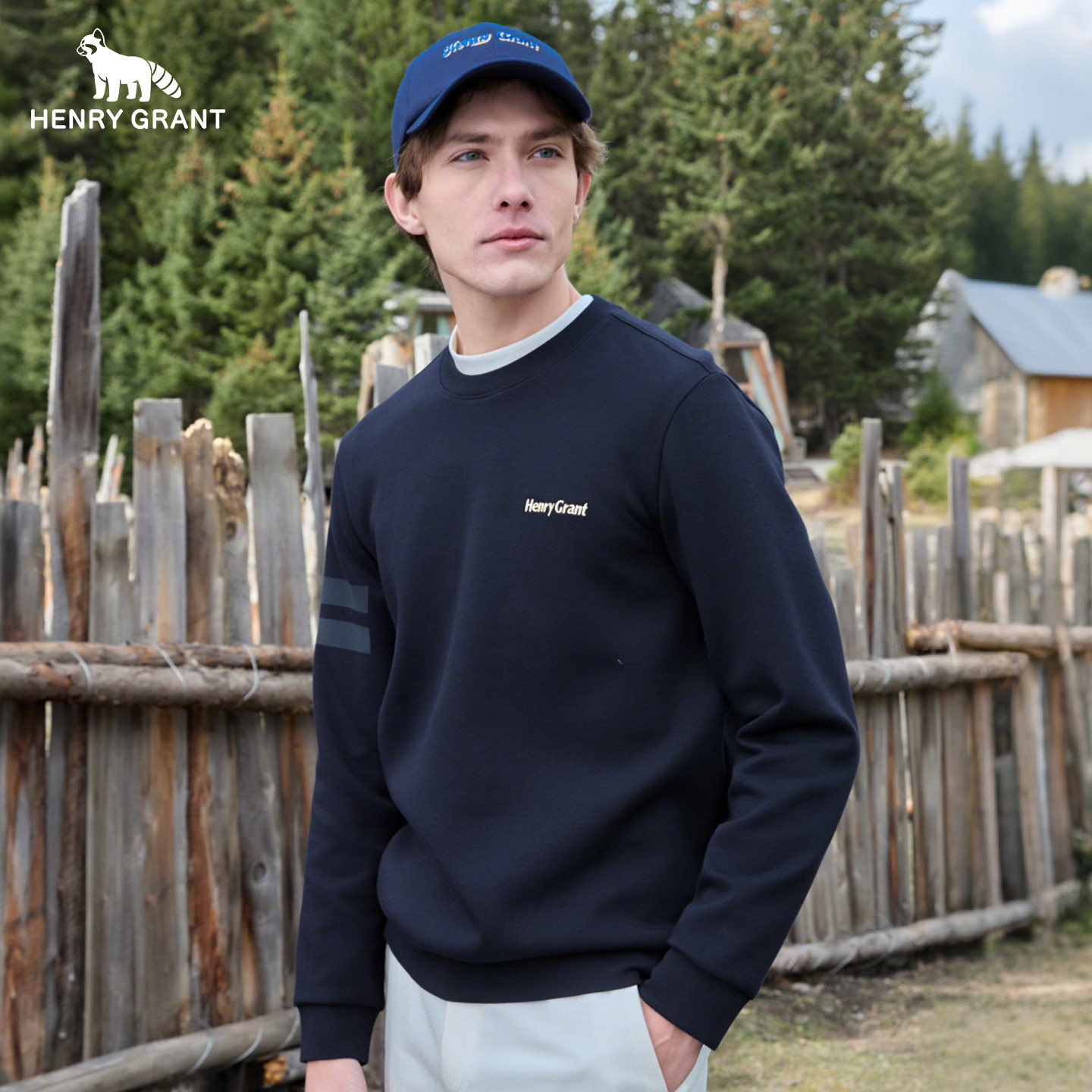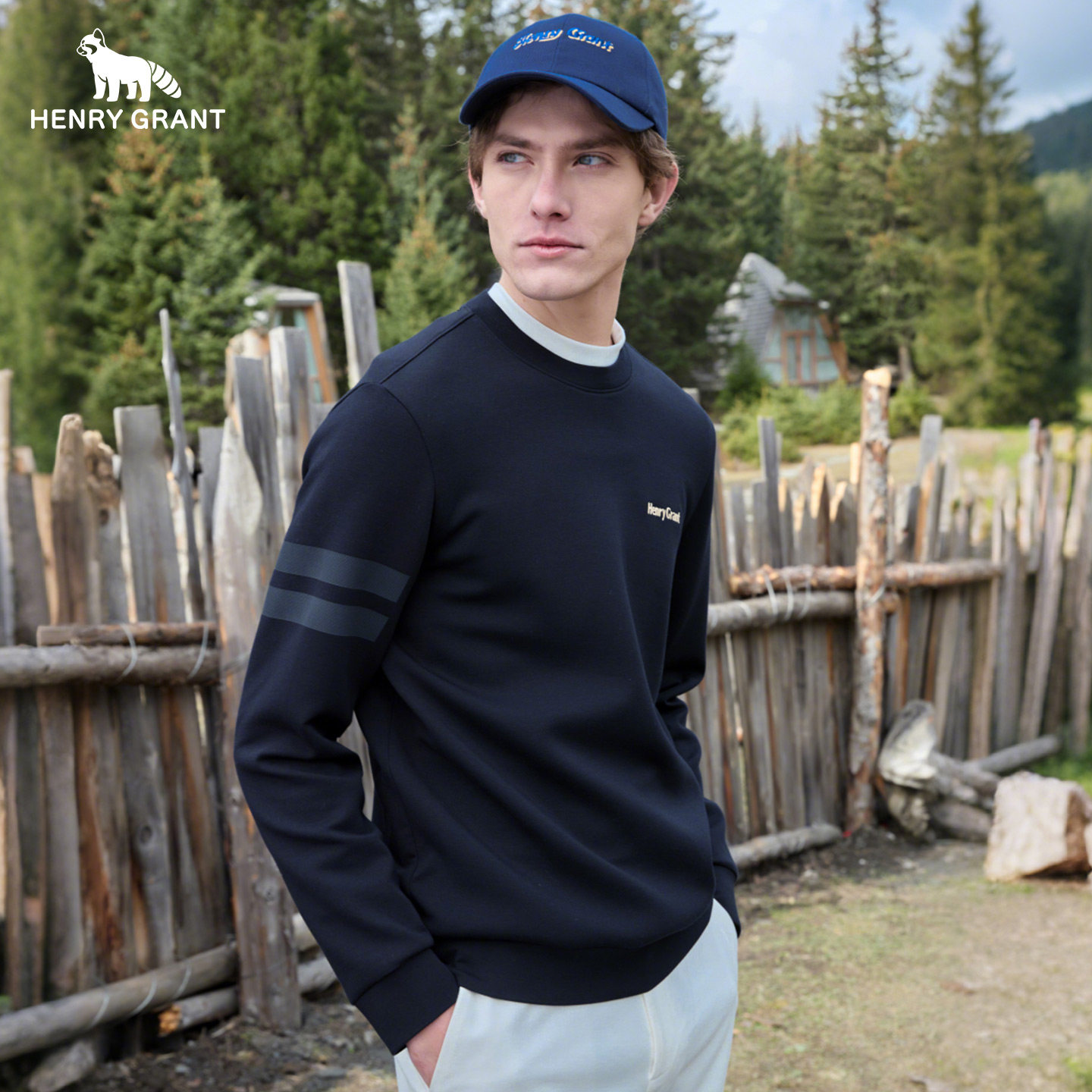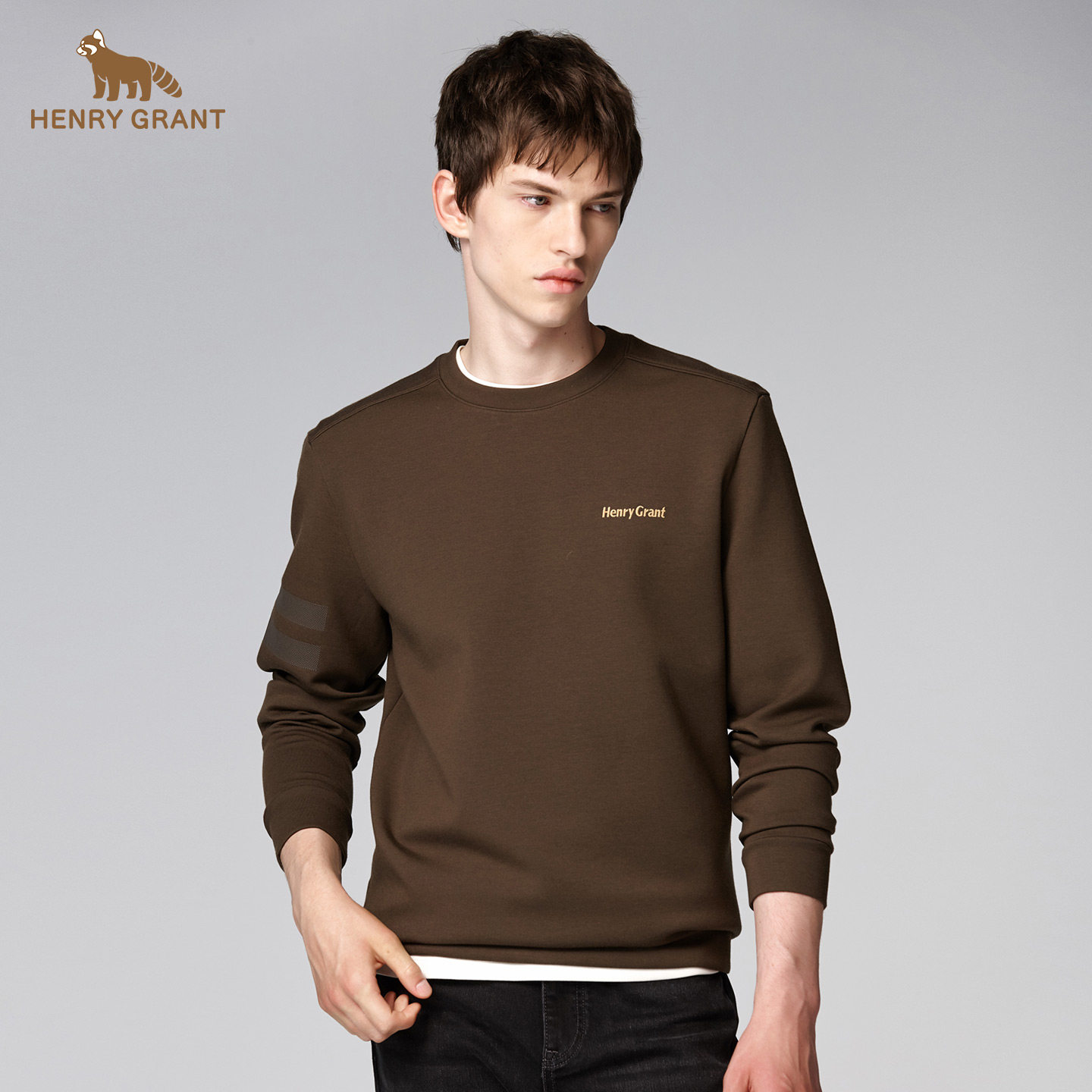 亨利格兰圆领长袖t恤男士2026春季新款英伦休闲百搭简约保暖卫衣