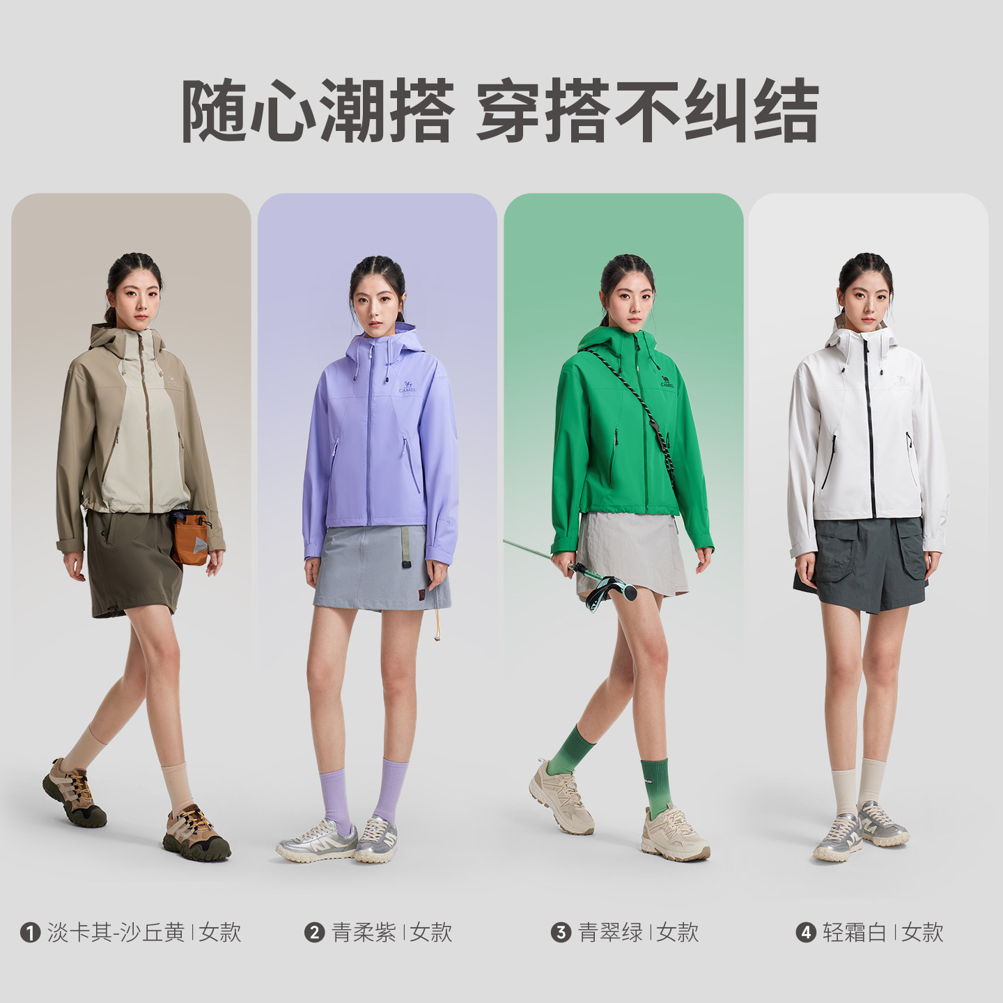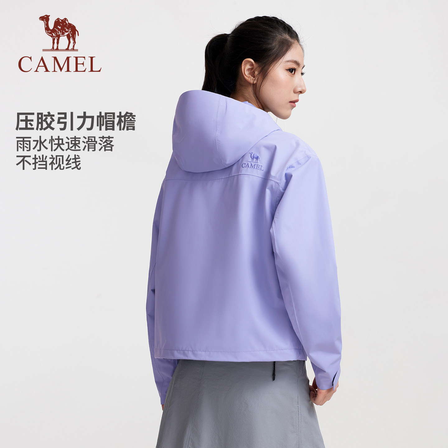 骆驼户外小斗篷式冲锋衣女科技三防防风防水外套短款2026春季新款