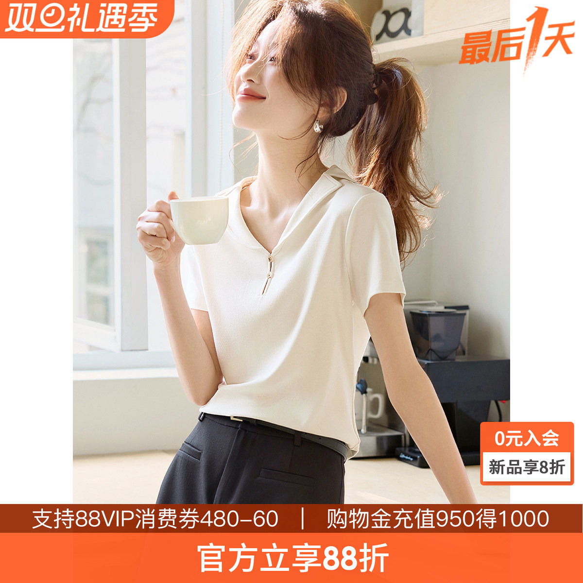 沫晗依美百搭小众设计感翻领短袖收腰显瘦衬衣2025夏季新款衬衫女