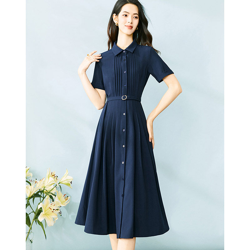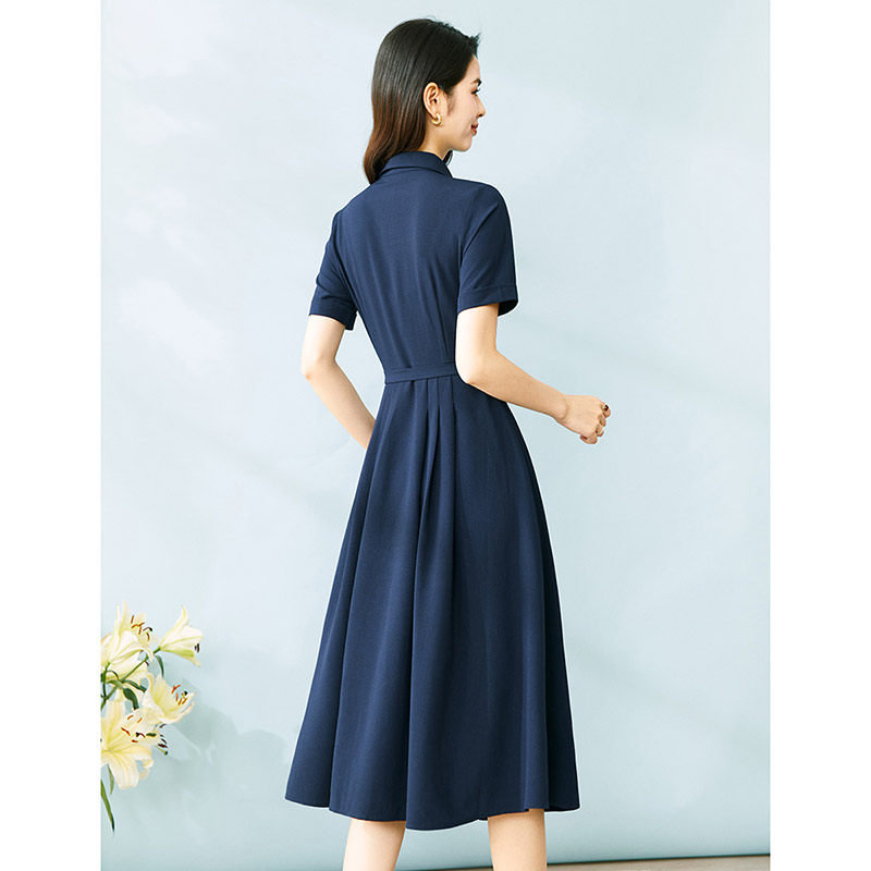 晚白2026年春新款气质简约翻领衬衫裙垂顺抗皱系带收腰连衣裙