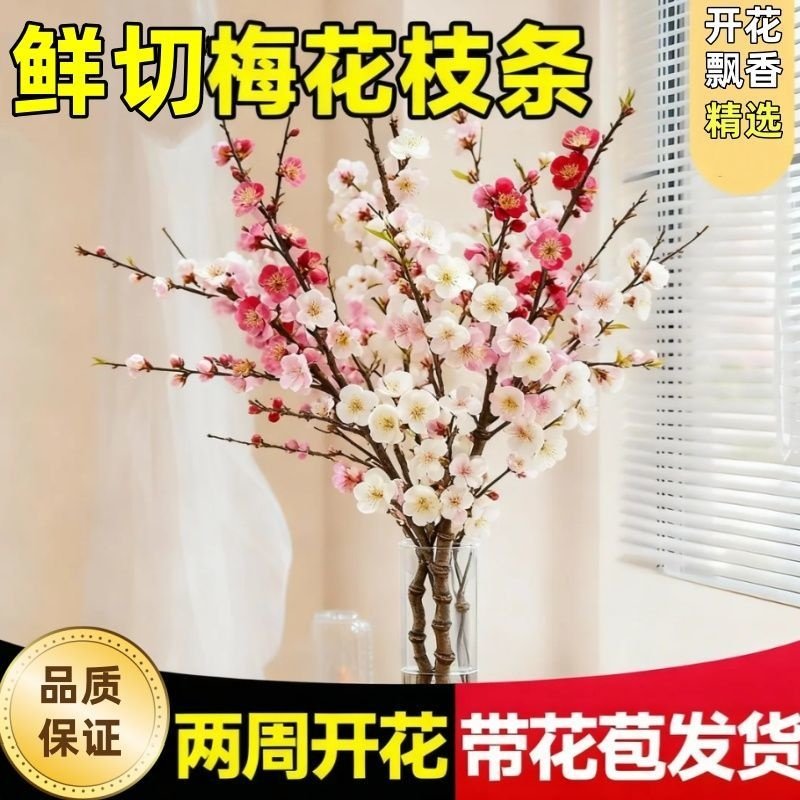 红梅水培植物干枝雪柳水养鲜花卉梅花鲜枝室内客厅绿植盆栽开花