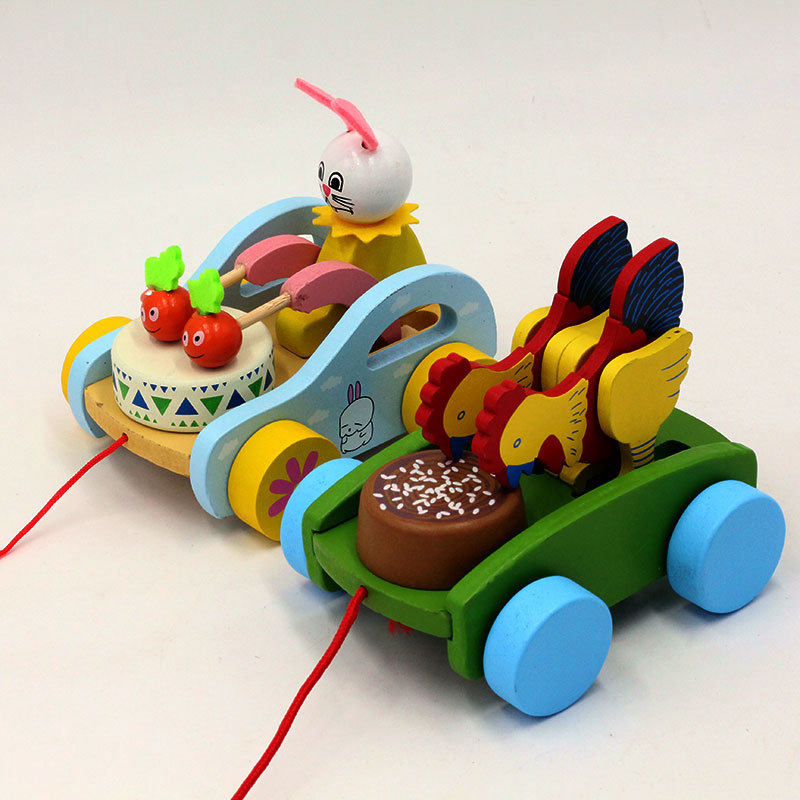 木质推车 鸡吃米拖拉线学步车 宝宝婴儿儿童玩具拉车工艺礼品