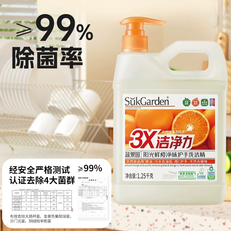 蔬果园洗洁精食品家用大桶不伤手按压瓶蔬菜水果洗涤剂实惠家庭