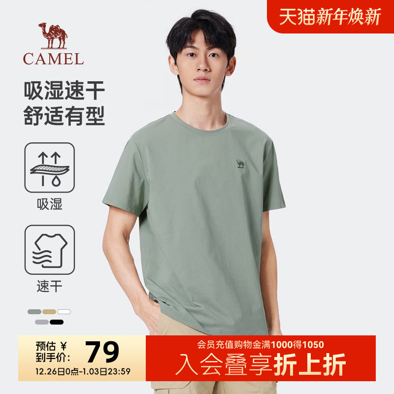 骆驼男装速干短袖t恤男女夏季2024情侣款纯色运动休闲半袖体恤