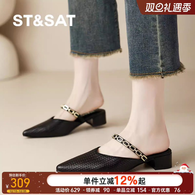 星期六2025法式绝美半拖单鞋超火尖头平底鞋女软底舒适夏季凉鞋女