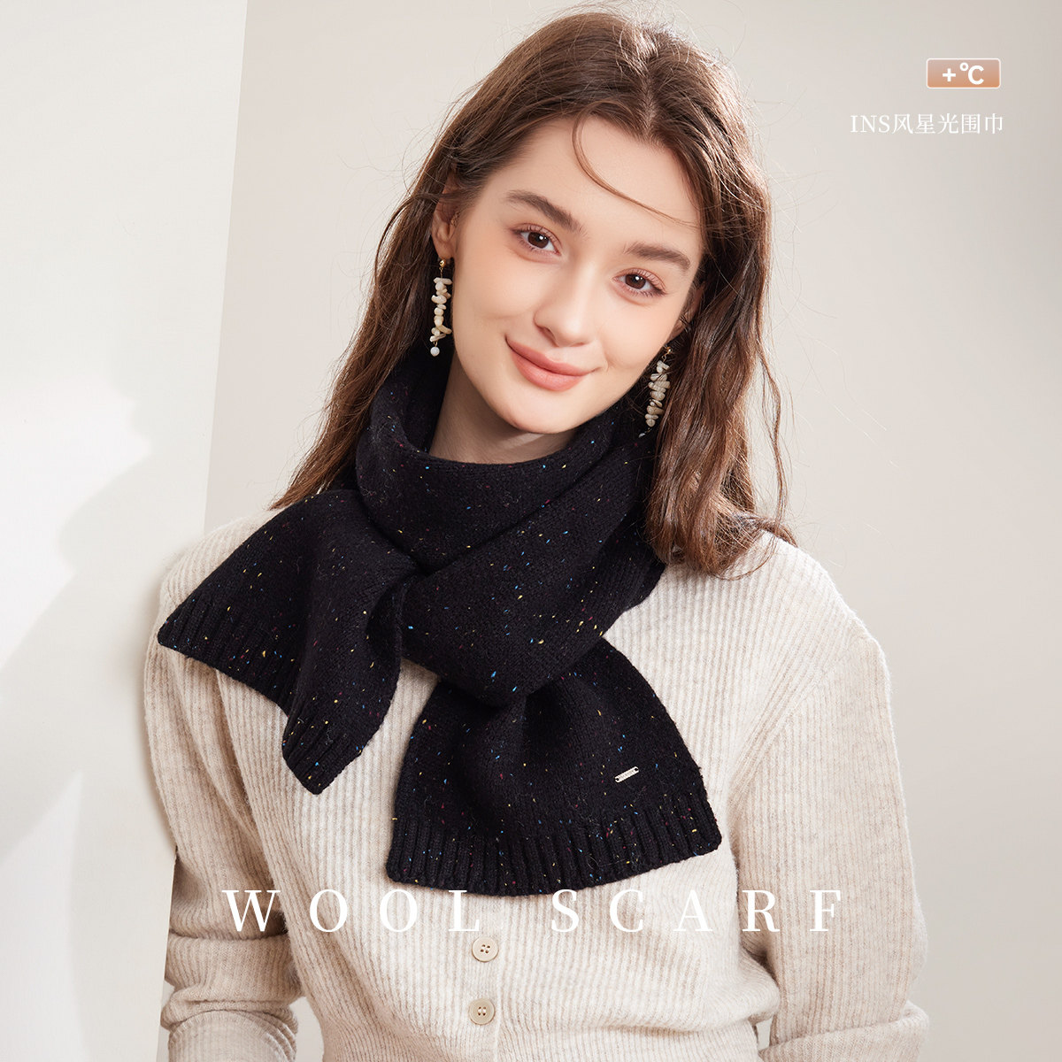 真享100%羊毛针织围巾女士秋冬季新款高级感百搭窄版围脖保暖护颈