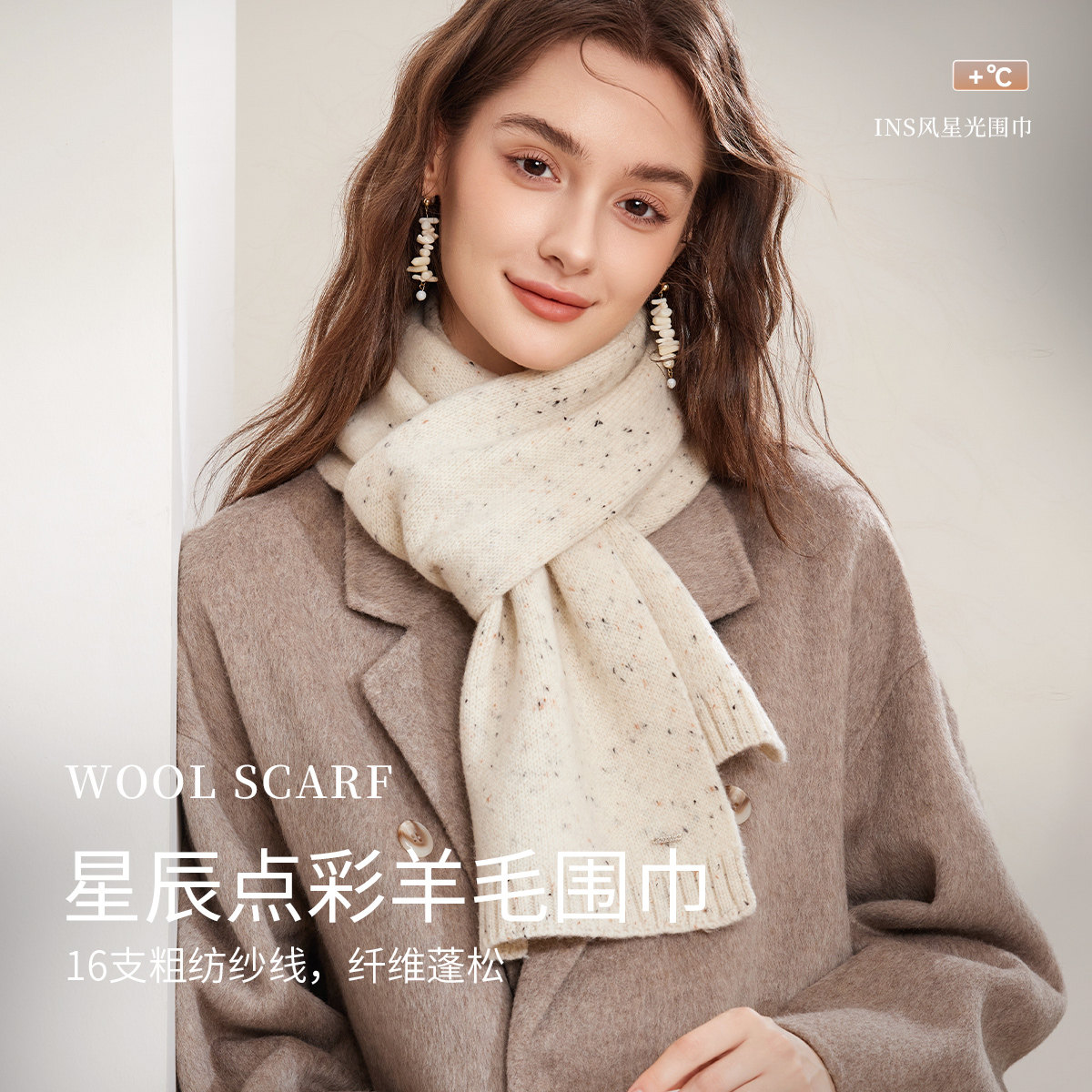 雪花双面针织围巾女秋冬季韩系氛围感加厚保暖高级感围脖复古披肩