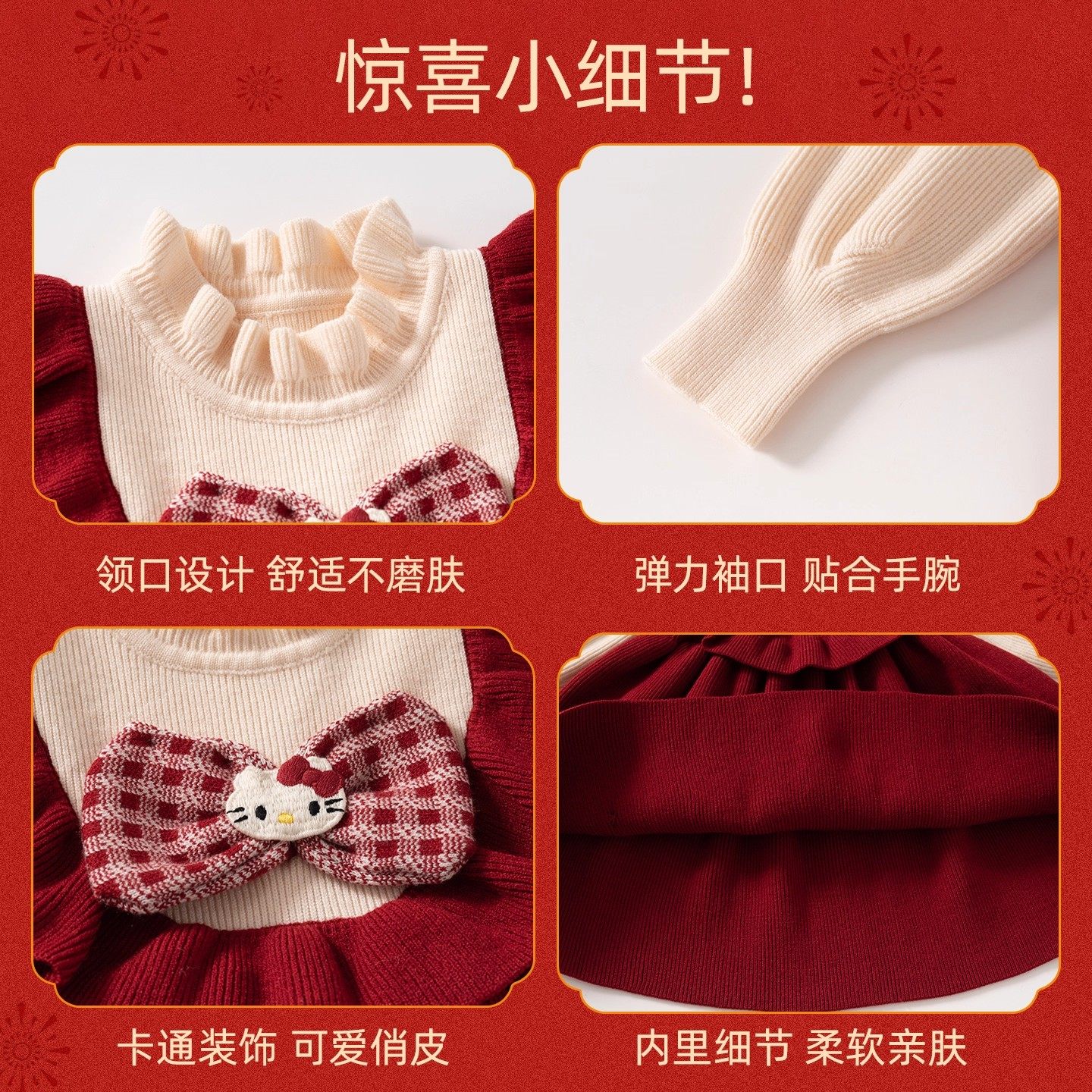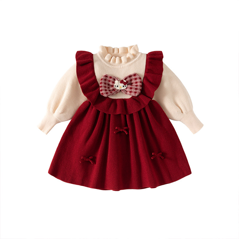 班喜迪女童连衣裙春装宝宝公主裙周岁礼服儿童针织裙子拜年服秋冬