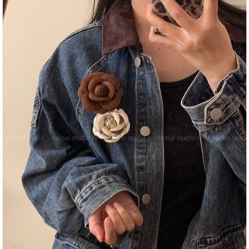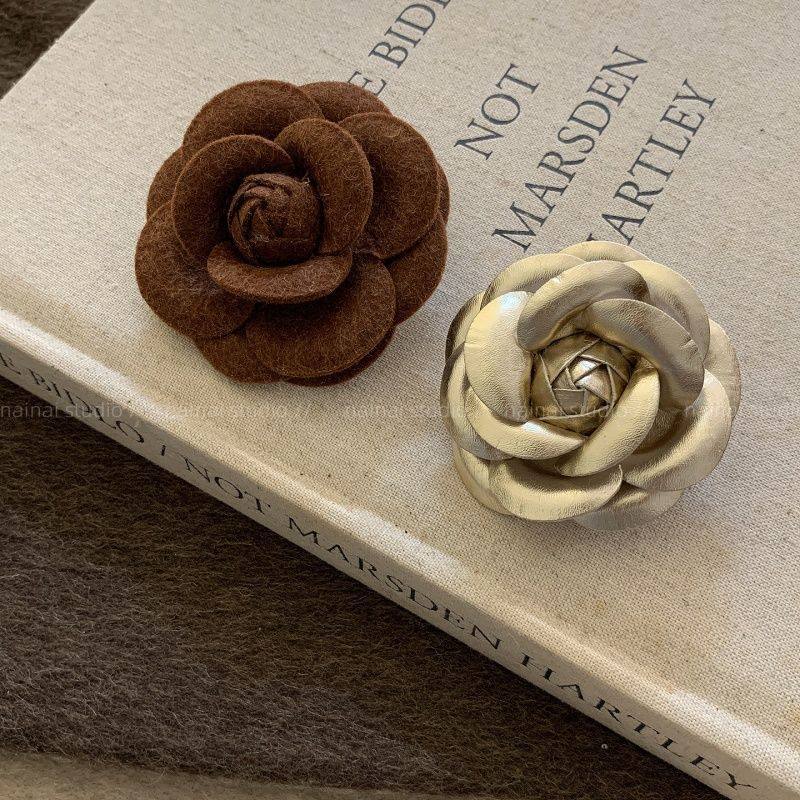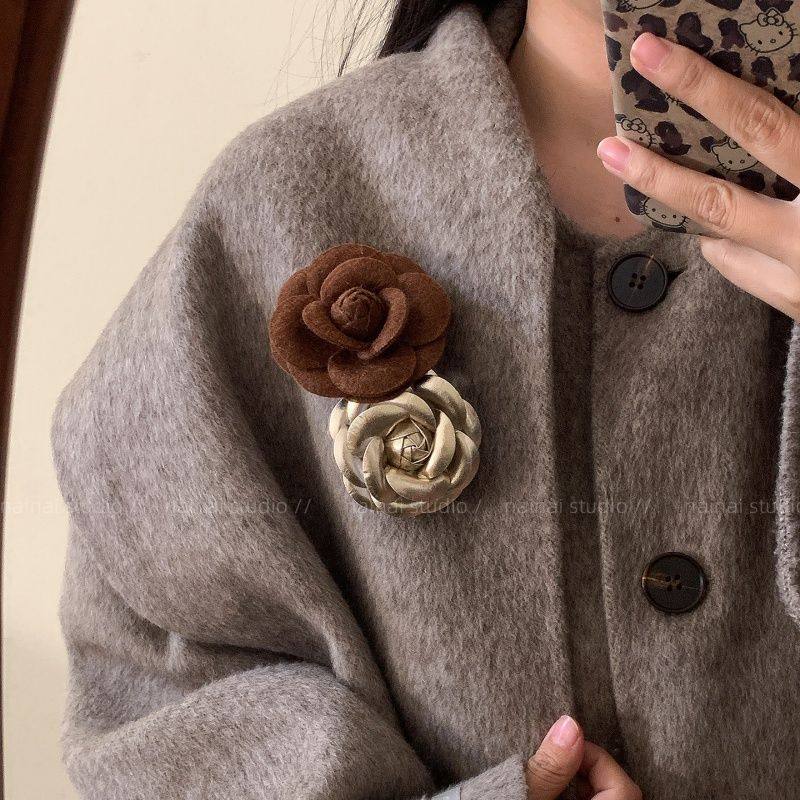 贵气千金~小香风山茶花胸针复古玫瑰花小众设计轻奢别针咖色配饰