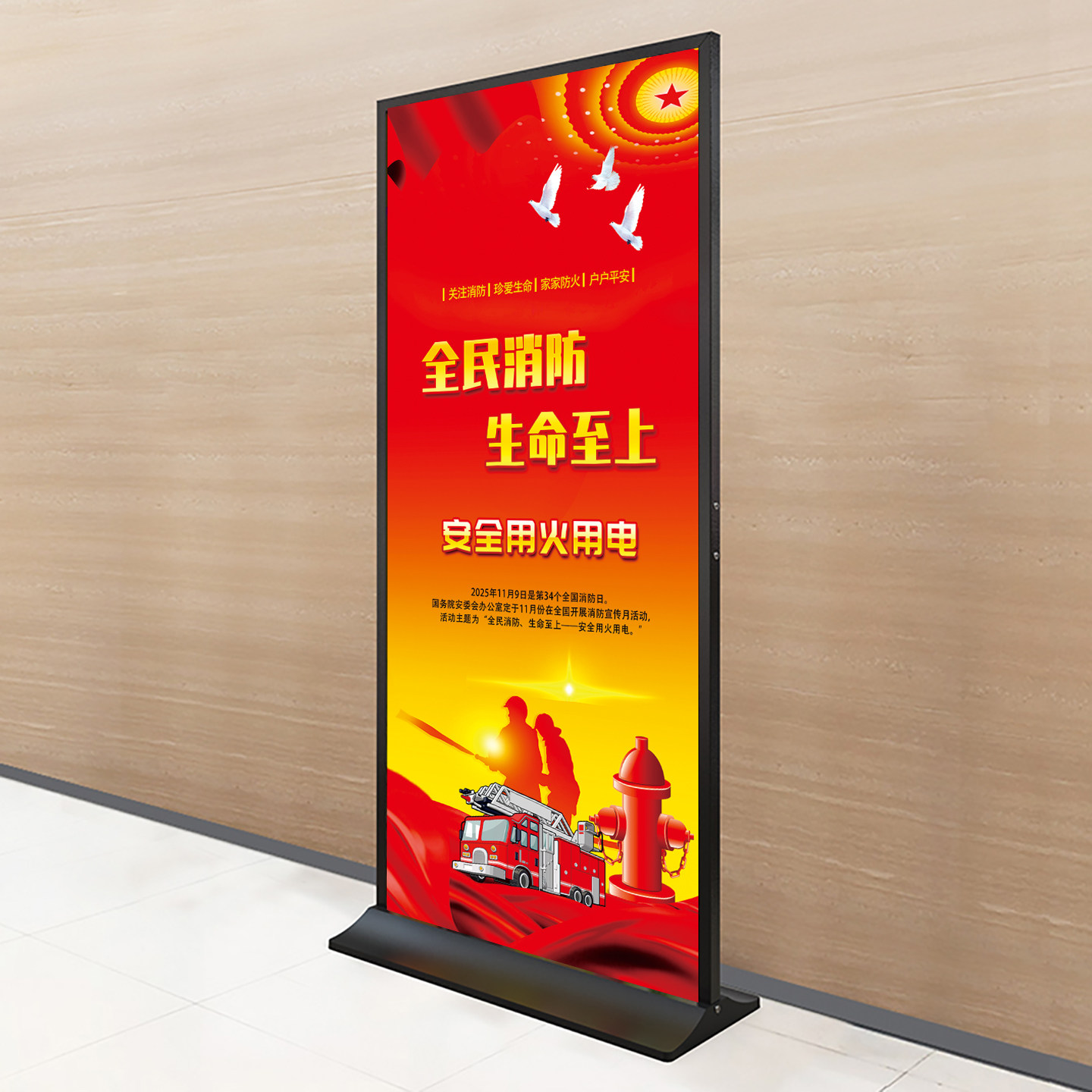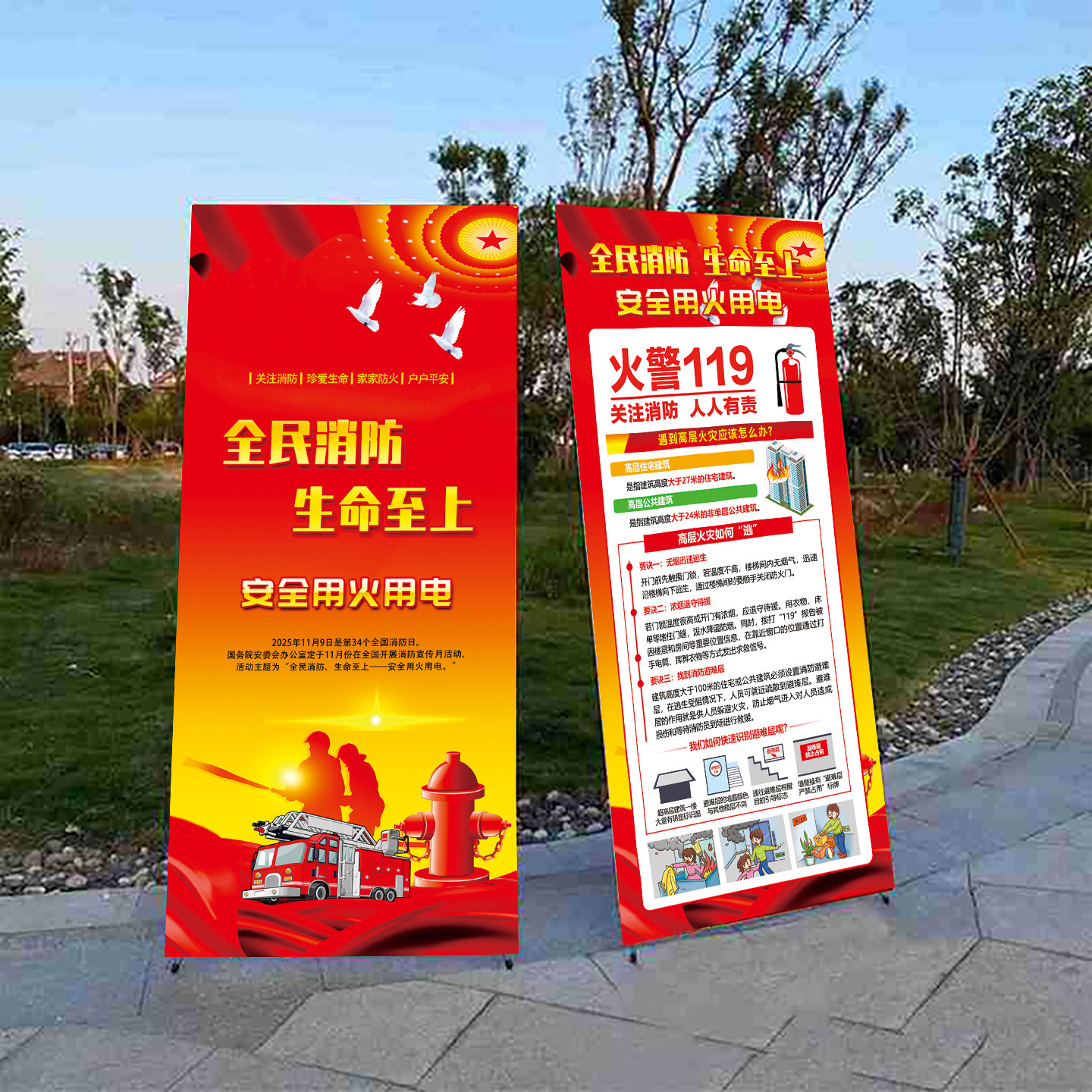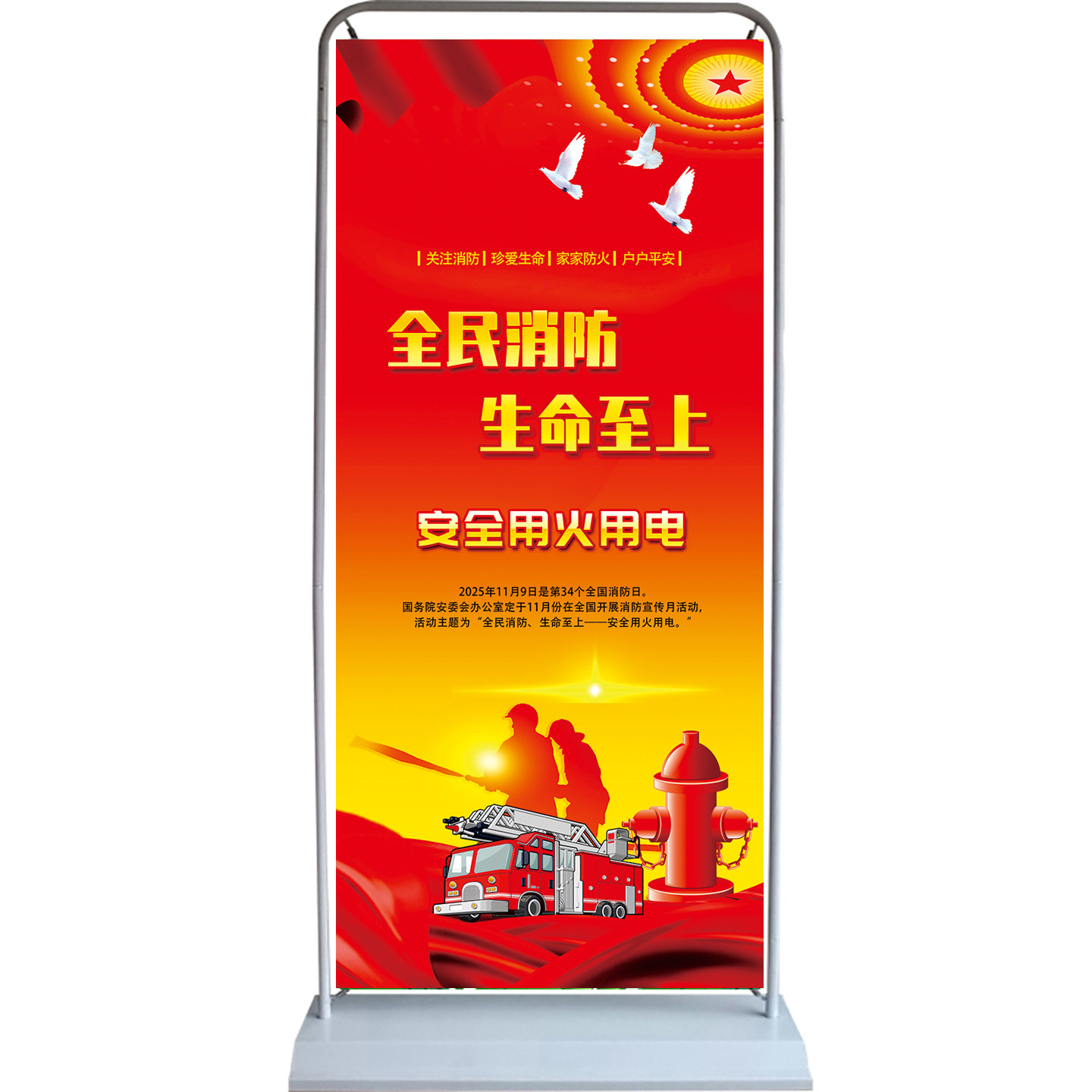 2025年消防月海报架宣传架 119消防日展架世界环境日宣传展架消防安全宣传安全生产月海报展架消防月海报展架