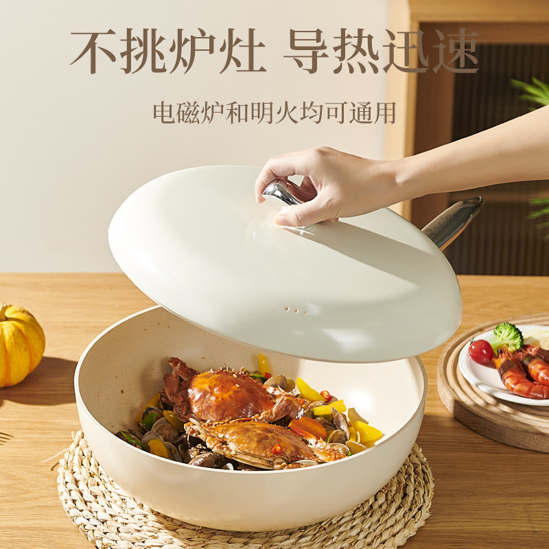 炊大皇不粘锅炒锅家用不跑油聚油炒菜锅平底不沾锅电磁炉燃气灶用