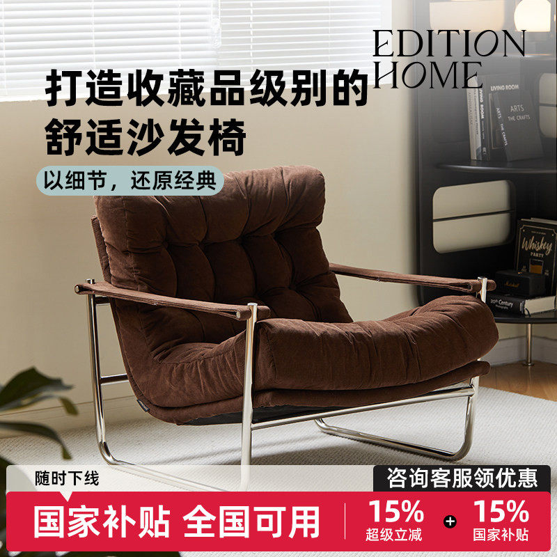 北欧复古单人沙发椅简约小户型家用客厅懒人椅躺椅网红阳台休闲椅
