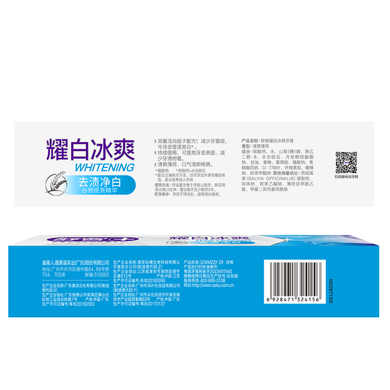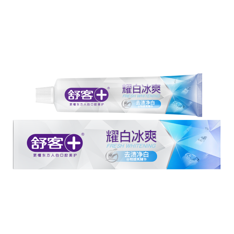 舒客牙膏耀白冰爽去黄去牙渍亮白清新口气家庭装实惠薄荷210克