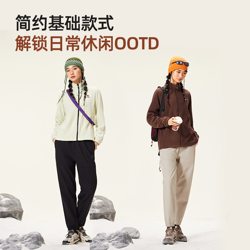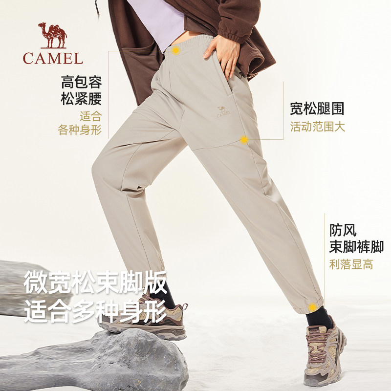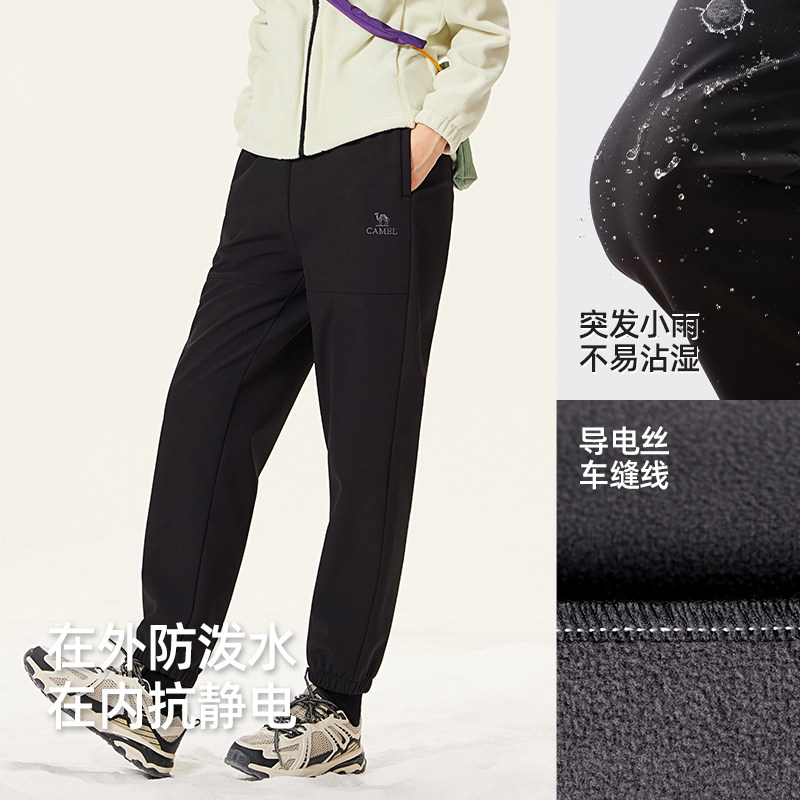骆驼女装2025秋冬新款软壳裤休闲裤弹力加绒裤防水抗静电束脚裤女