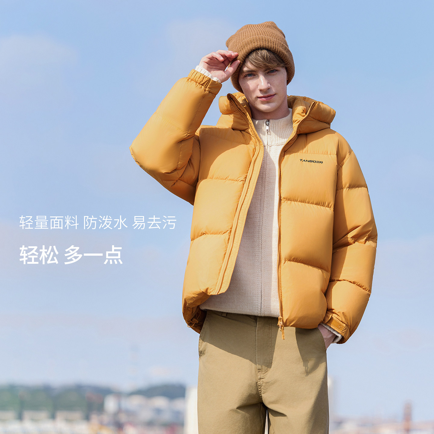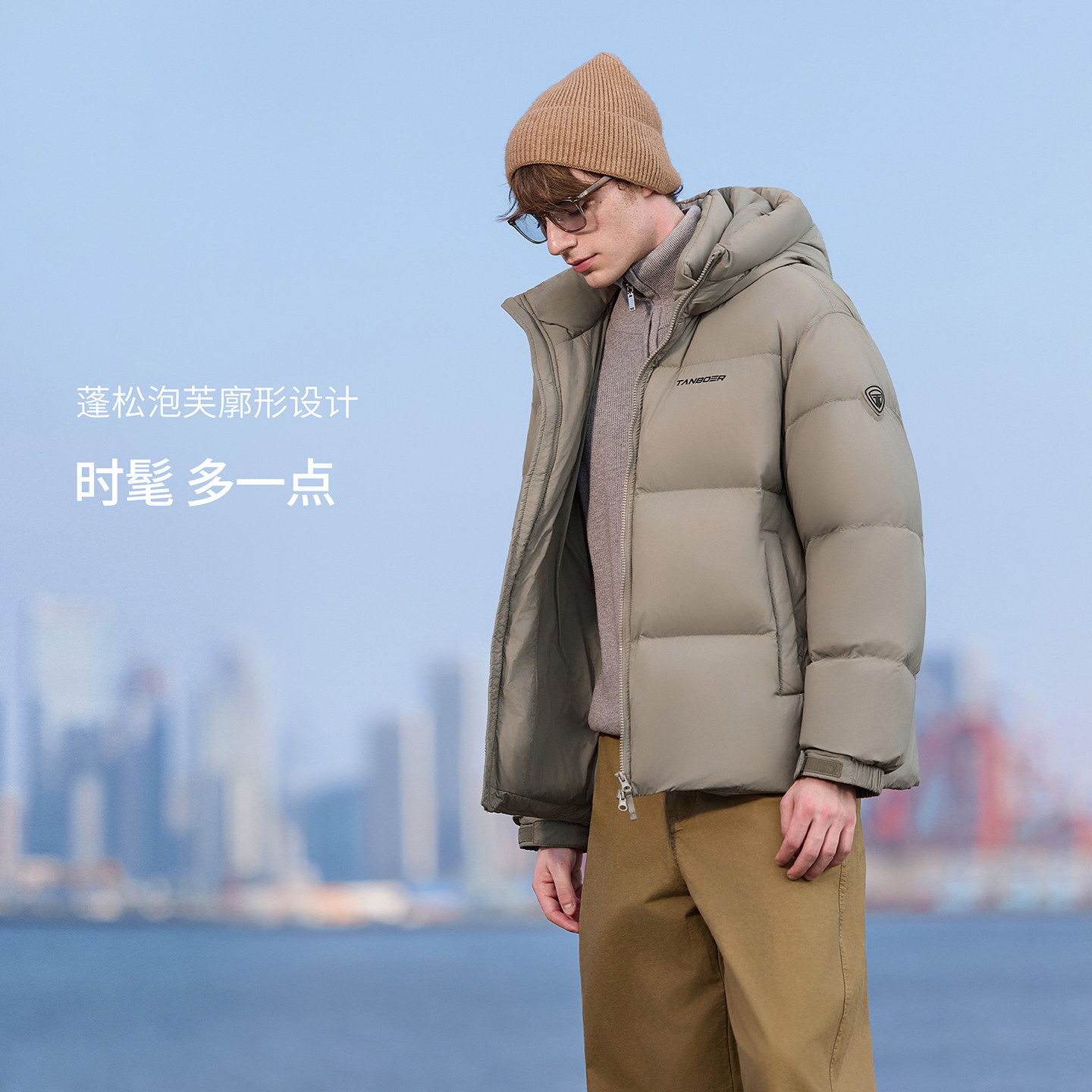 坦博尔25冬季新款羽绒服男士泡芙加厚短款连帽款保暖商务品质外套