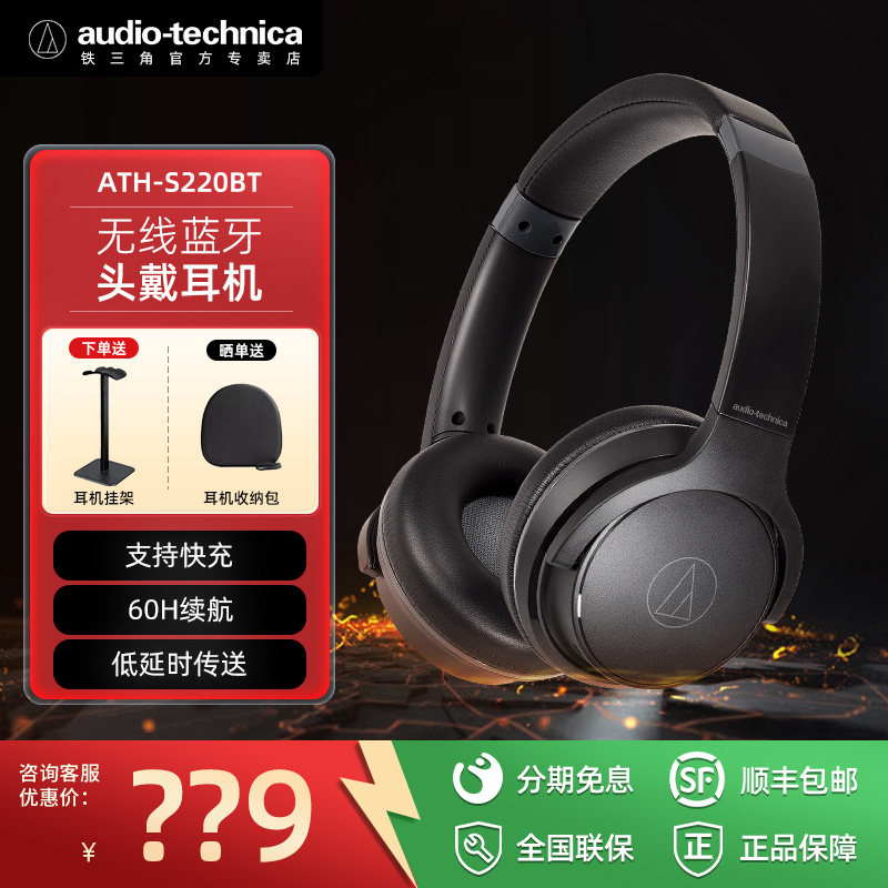 铁三角无线蓝牙耳机头戴式ATH-S220BT带麦有线超长待机游戏耳机