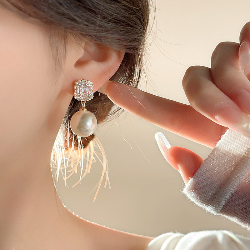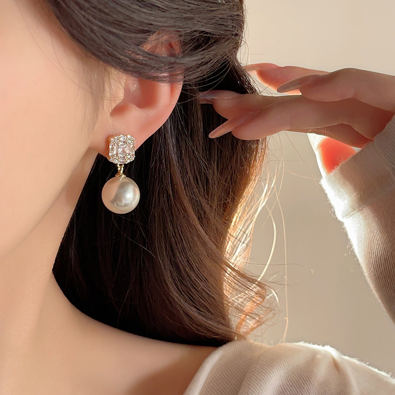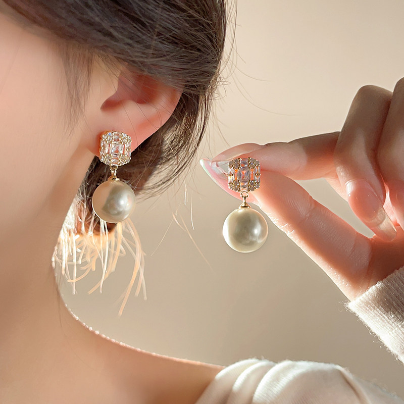 锆石珍珠耳钉女秋冬新款2025爆款气质耳饰小众设计高级感法式耳环