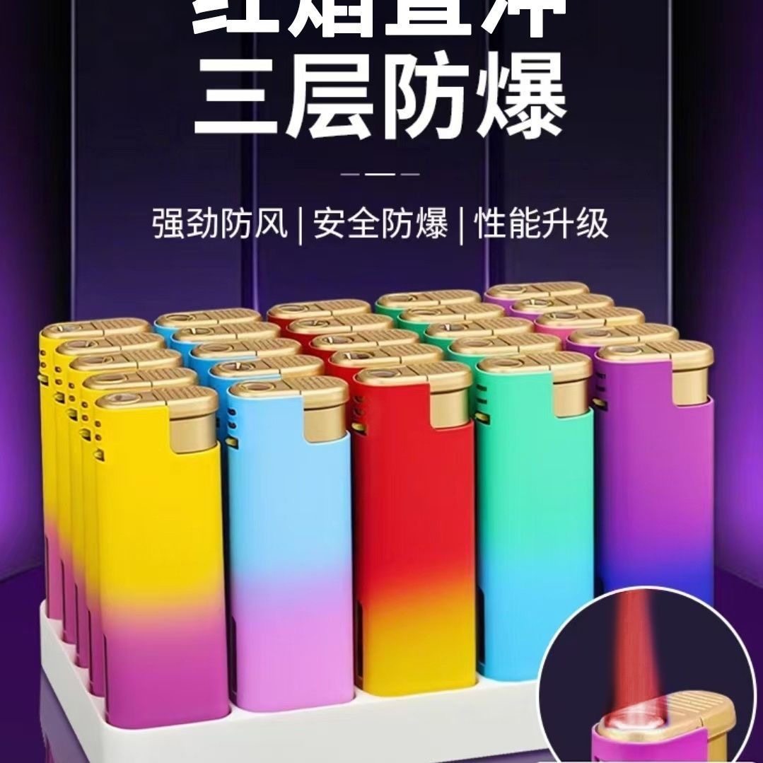 新款50只红焰直冲防风耐高温打火机个人家用商超批发可印字火机